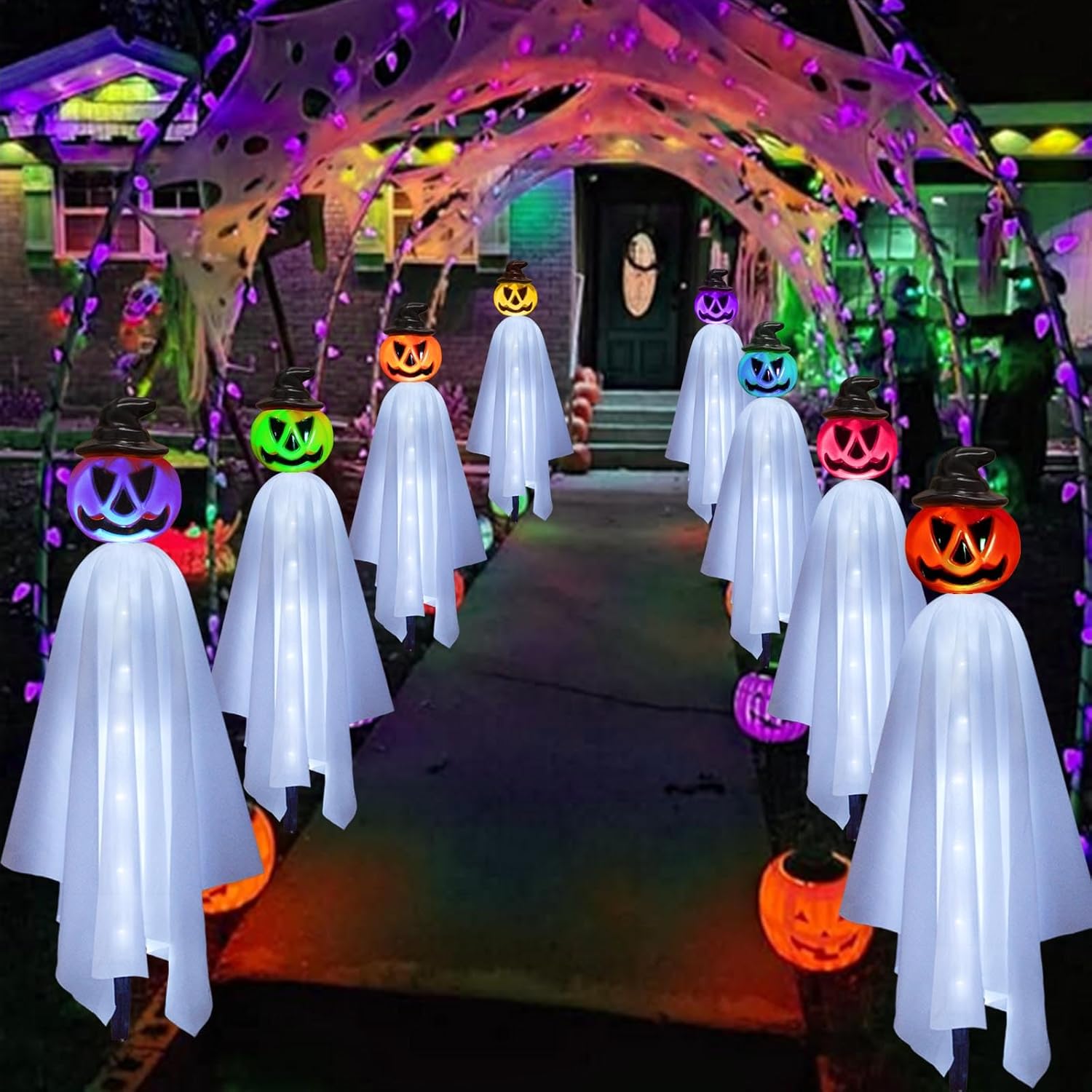 - 【Halloween Outdoor Decorations】--- Trick or treat, it's time to deck the halls and yard with halloween decorations! outside halloween ghost decorations are perfect for adding a chill to your patio, party, garden or lawn. they look great. Light up well and fit perfectly on halloween decorations.