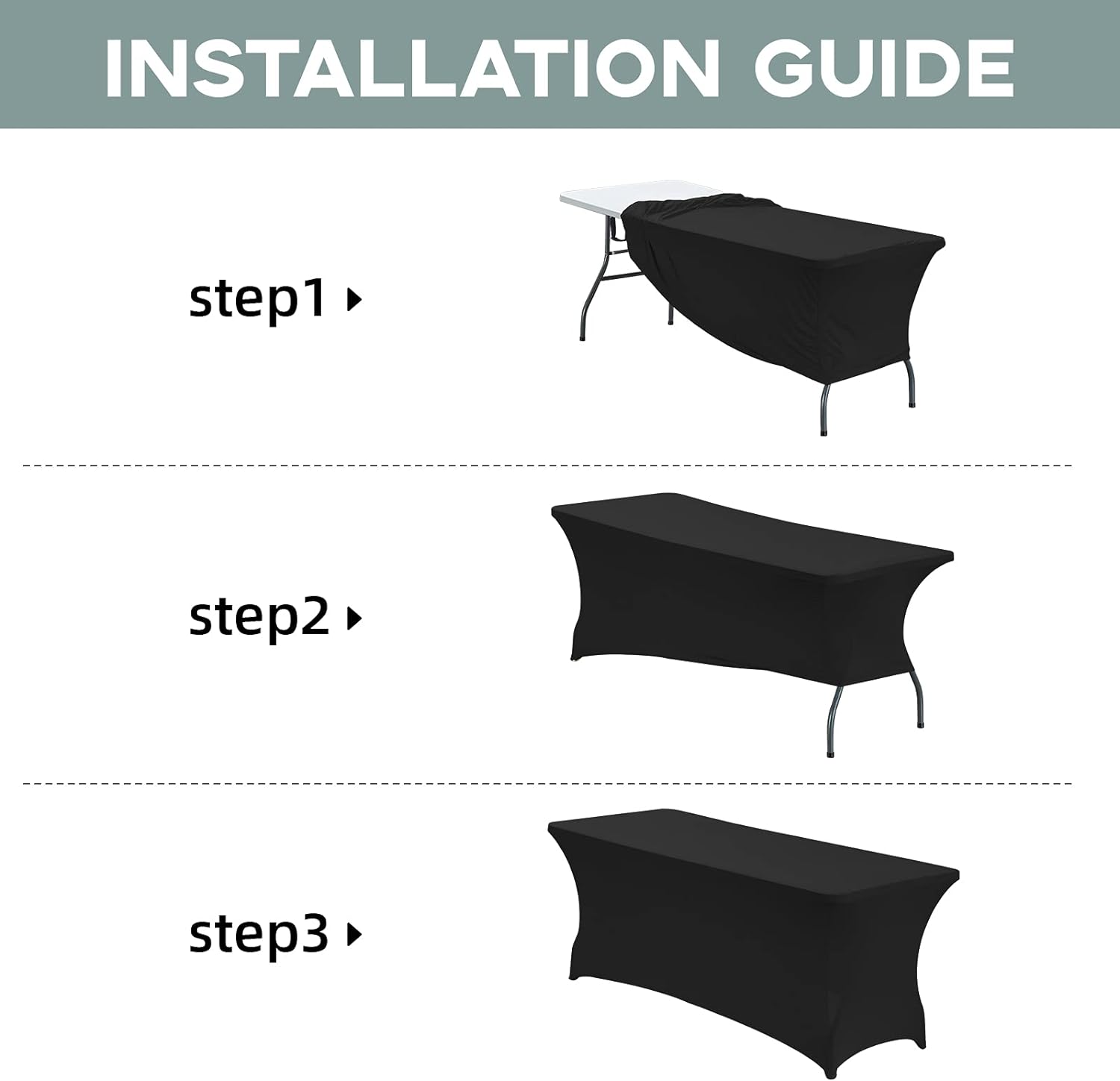 CWK 6FT Stretch Spandex Table Cover for Rectangular Tables - Elastic Fitted Tablecloth for Folding Tables, Wrinkle Resistant, Durable Table Protector for Parties,Weddings,Banquets &Events (Black)
