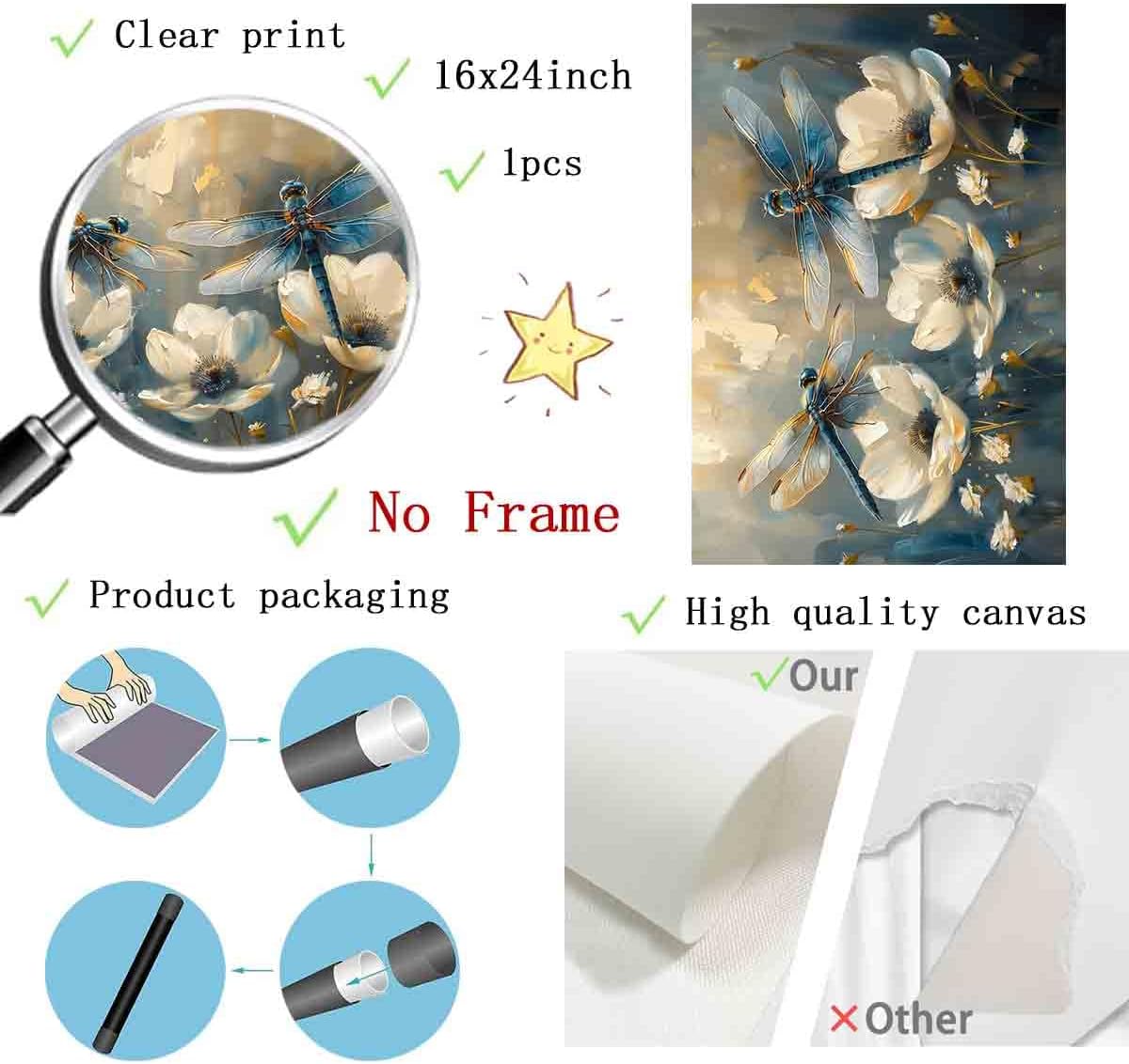 - 1.Canvas wall art specifications:Size:16X24inch,frameless,high-definition canvas wall art prints,printing pictures on canvas,using high-quality environmentally friendly ink,not easy to fade. The colors are beautiful and shiny,high-definition Giclee modern canvas print artwork.