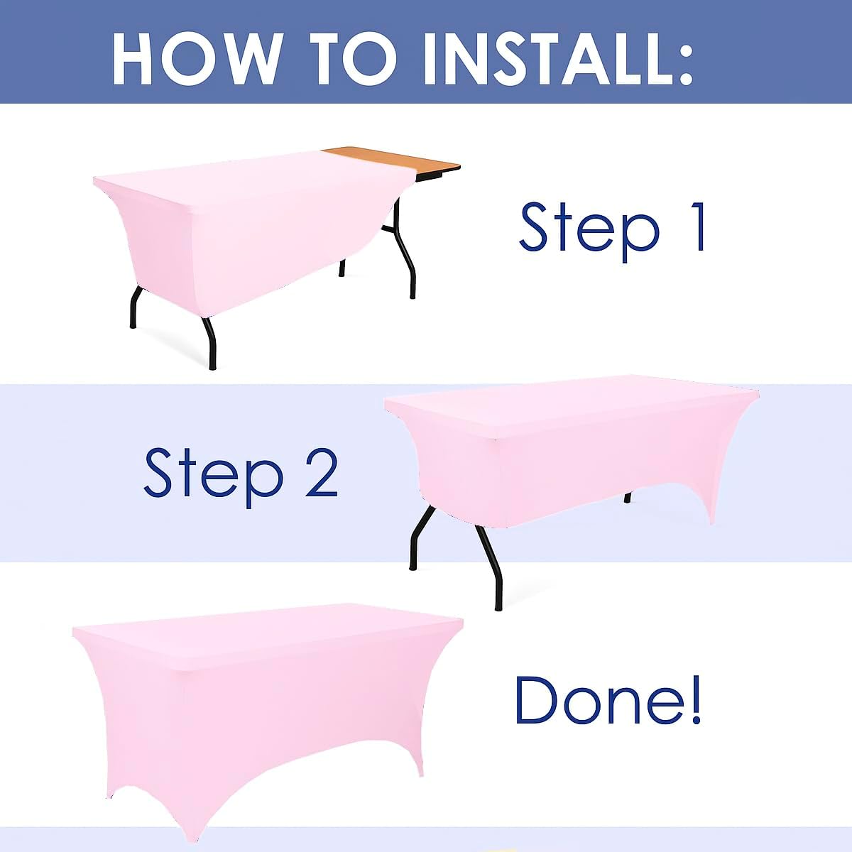 Craft And Party 2 Pack 8ft Light Pink Spandex Tablecloth – Fitted Stretch Cover – Universal Fit for Folding Tables – Wrinkle-Free, Washable – Ideal for Parties, Weddings, Events