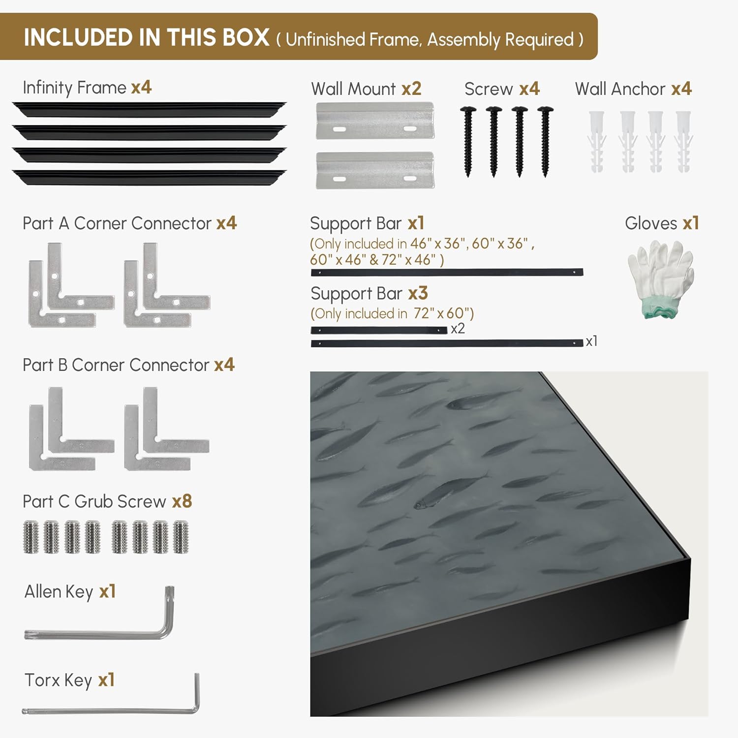 - Assembly Required: The artwork comes with the frame components unassembled. Don¡¯t worry - setup is straightforward and tool-friendly. For best results and accurate alignment, we recommend two people to ensure a smooth assembly and a stable, secure wall mount.