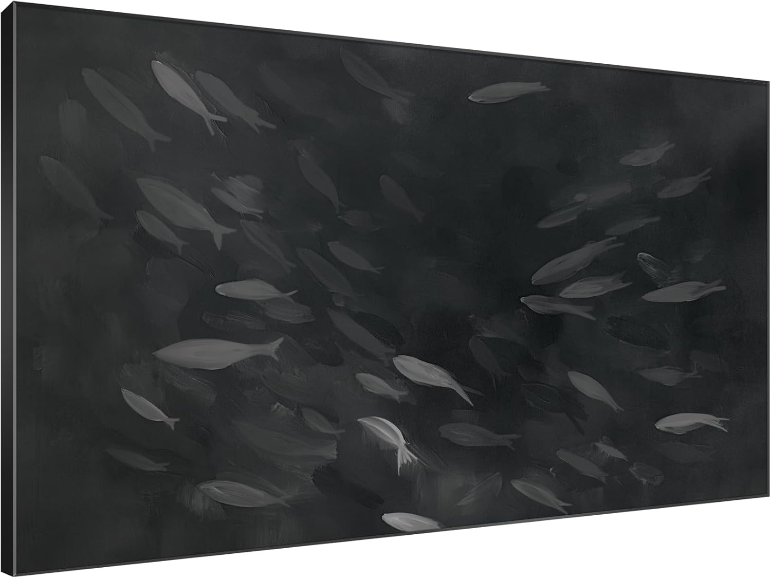SIGNWIN 46"x72" Extra Large Framed Wall Art Monochrome Fish Silhouettes Illustration for Home Living Room Bedroom Decor (Frame Assembly Required)