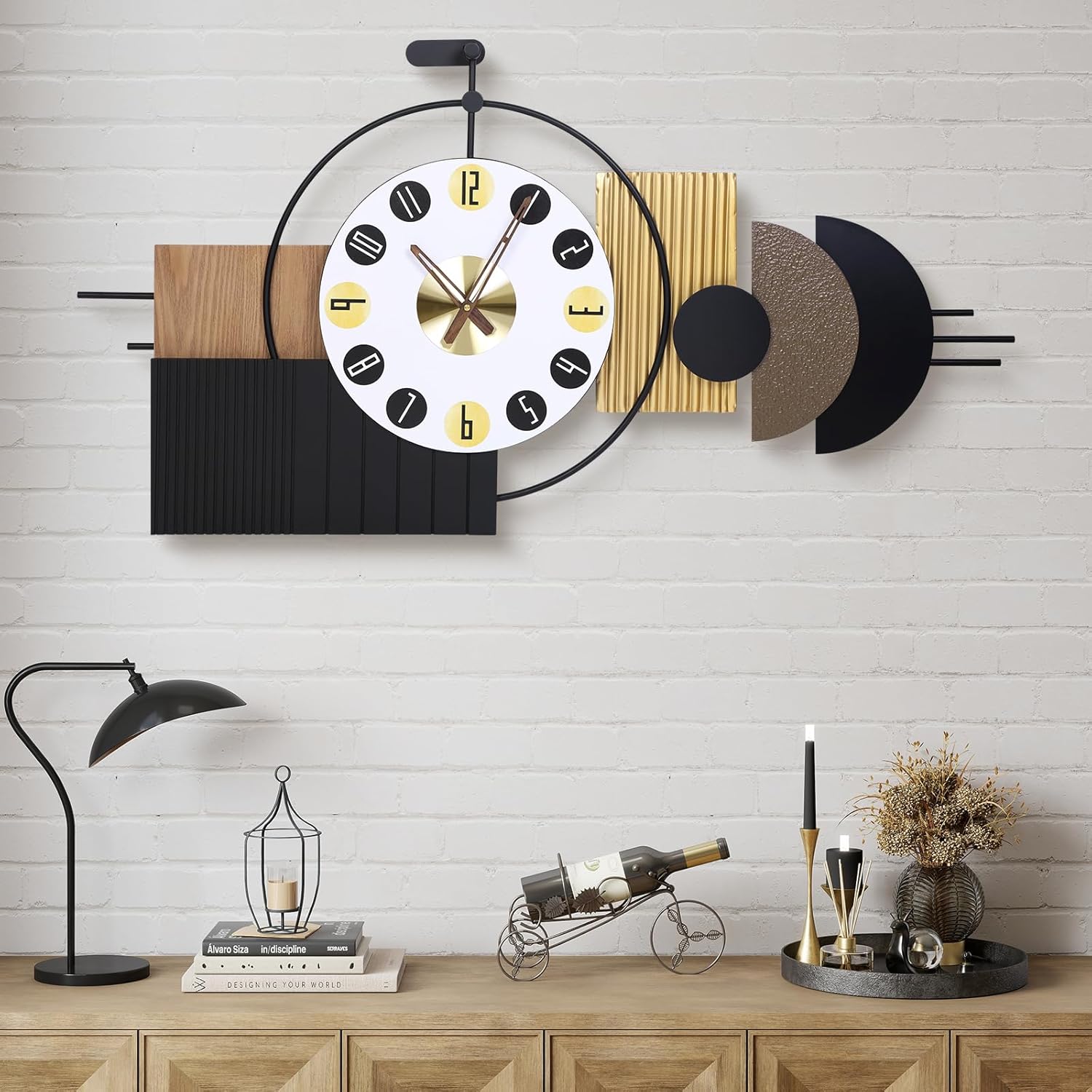 Oversized Modern Wall Clocks-Large Geometric Dial Wall Clock Battery Operated,Wood Metal Frame Big Clock Silent Non Ticking,for Living Room, Bedroom,Kitchen,Farmhouse,Office -42X21.6 Inch