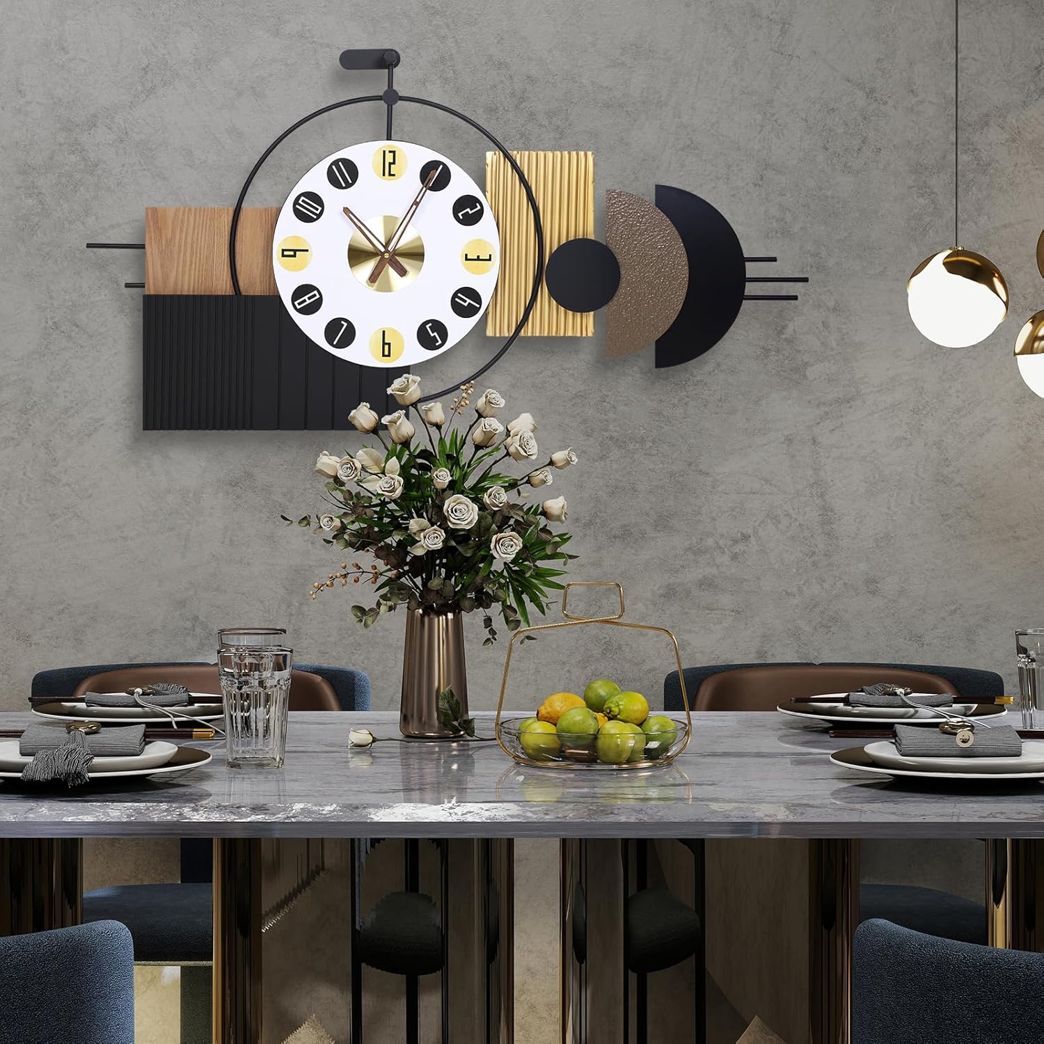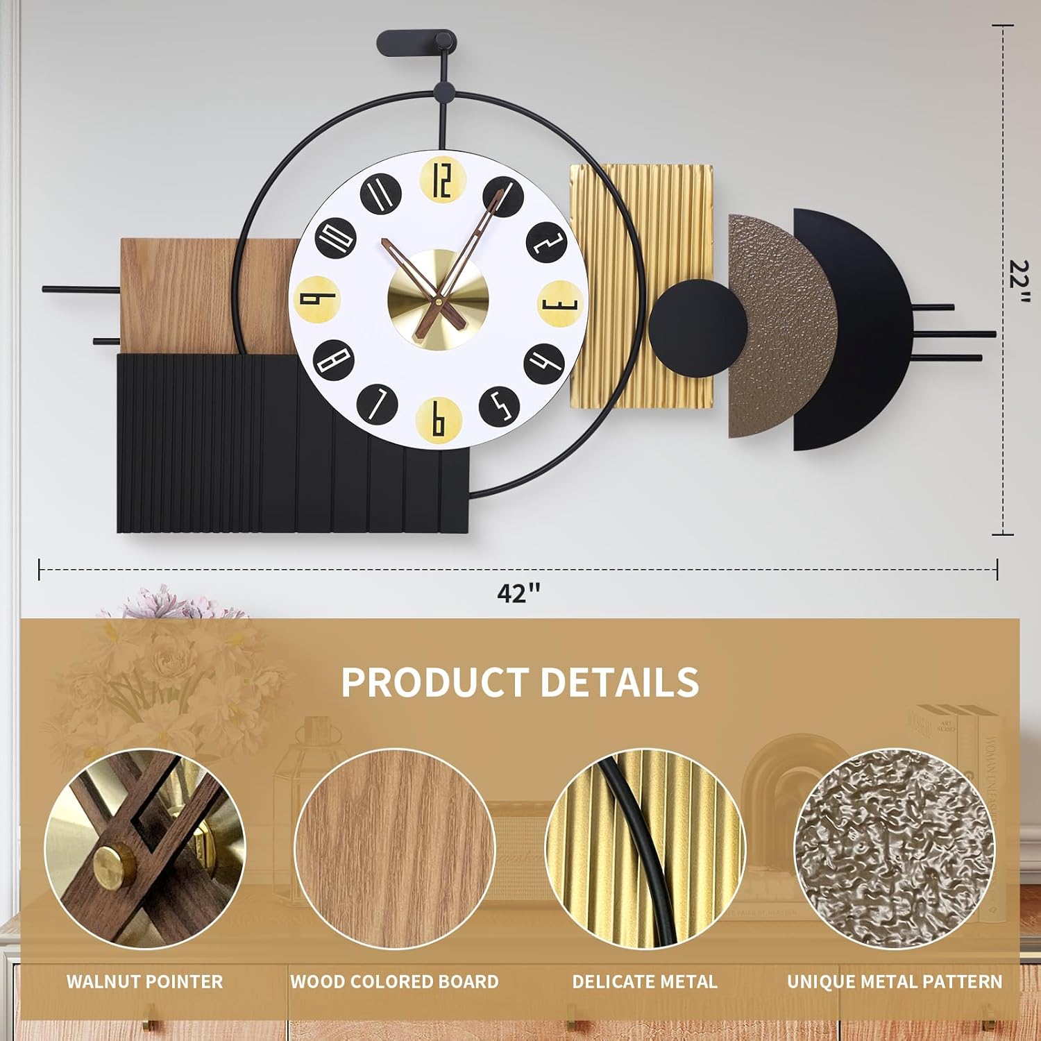 - 【Oversized Modern Design】Measuring 42 x 21.6 inches, this oversized wall clock features a striking geometric dial and minimalist style, perfect for modern, industrial, or farmhouse interiors.