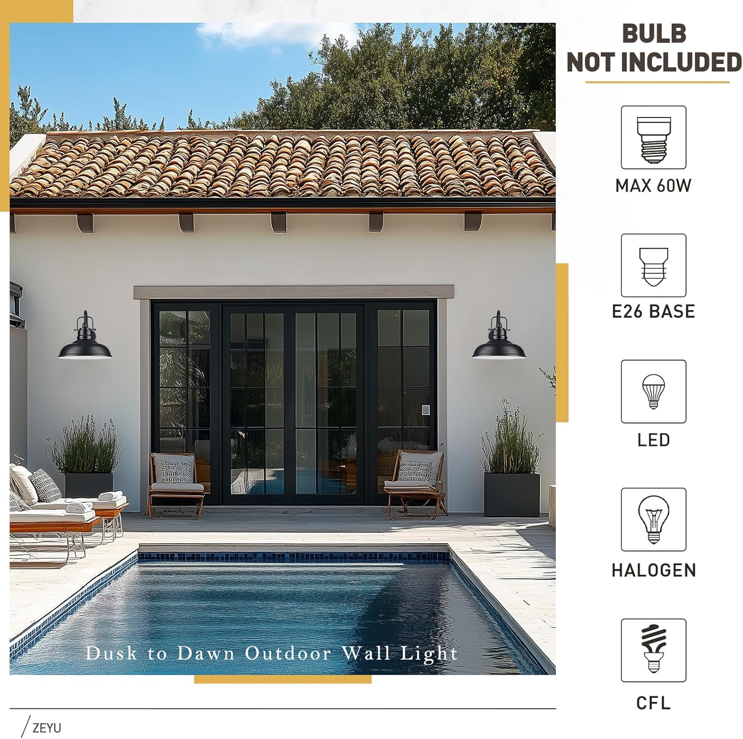 - ETL LISTED & WARRANTY: ETL listed for your safety. It is backed by a 1-year manufacturer's warranty. This dusk to dawn wall light fixtures is ideal for barn, warehouse, covered porch, kitchen, bedroom, bathroom, dining room, living room, hallway, entryway, corridor, staircase, office, loft, storage room, restaurant, cafe and bar.