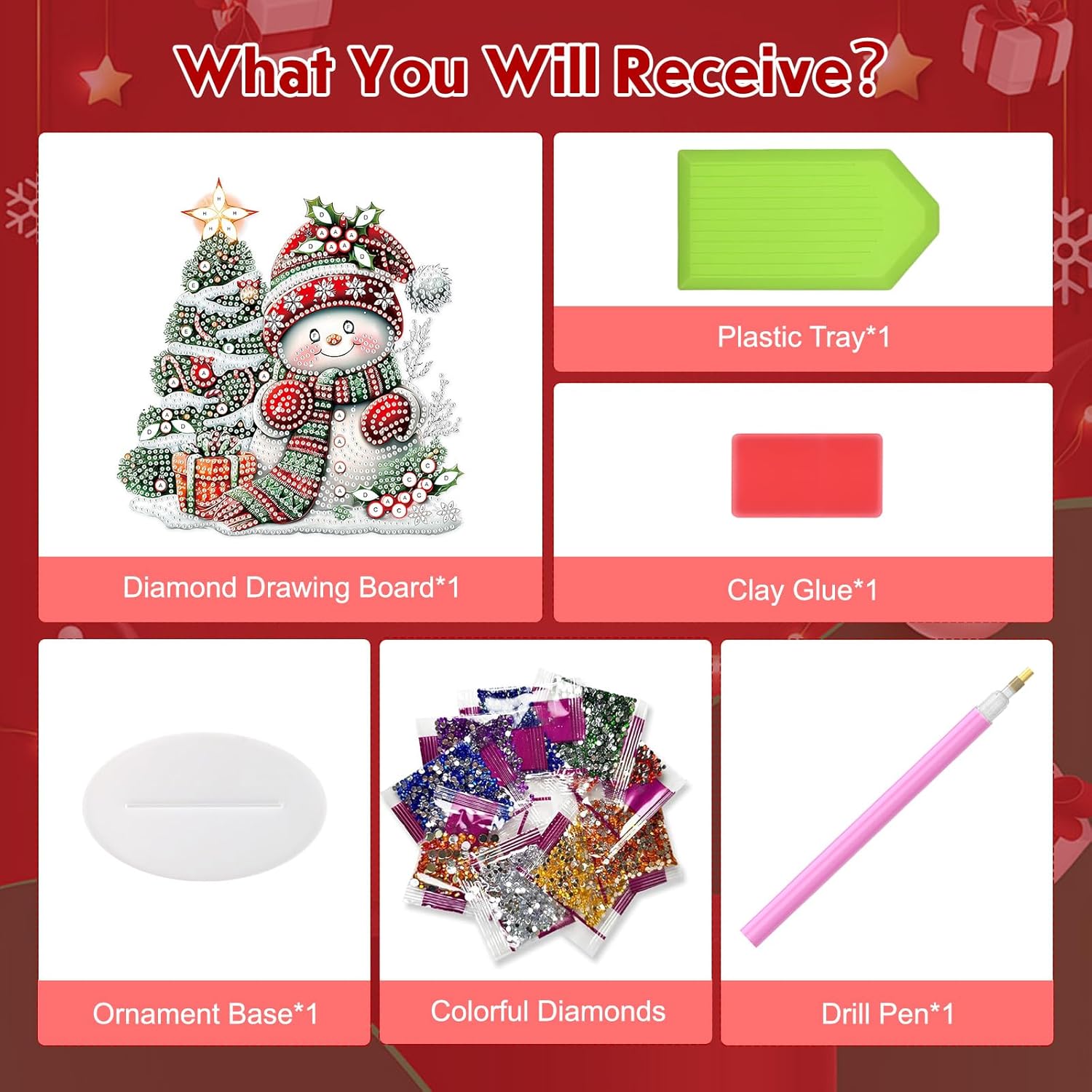 - DIAMOND ART PENDANT KITS: You will receive DIY desktop diamond ornament board *1, ornament base *1, dotting pen *1, glue *1, diamond tray *1 and enough colorful sparkling crystal diamonds, just a few simple steps and a little bit of time to get started easily, anyone can make exquisite desktop ornaments