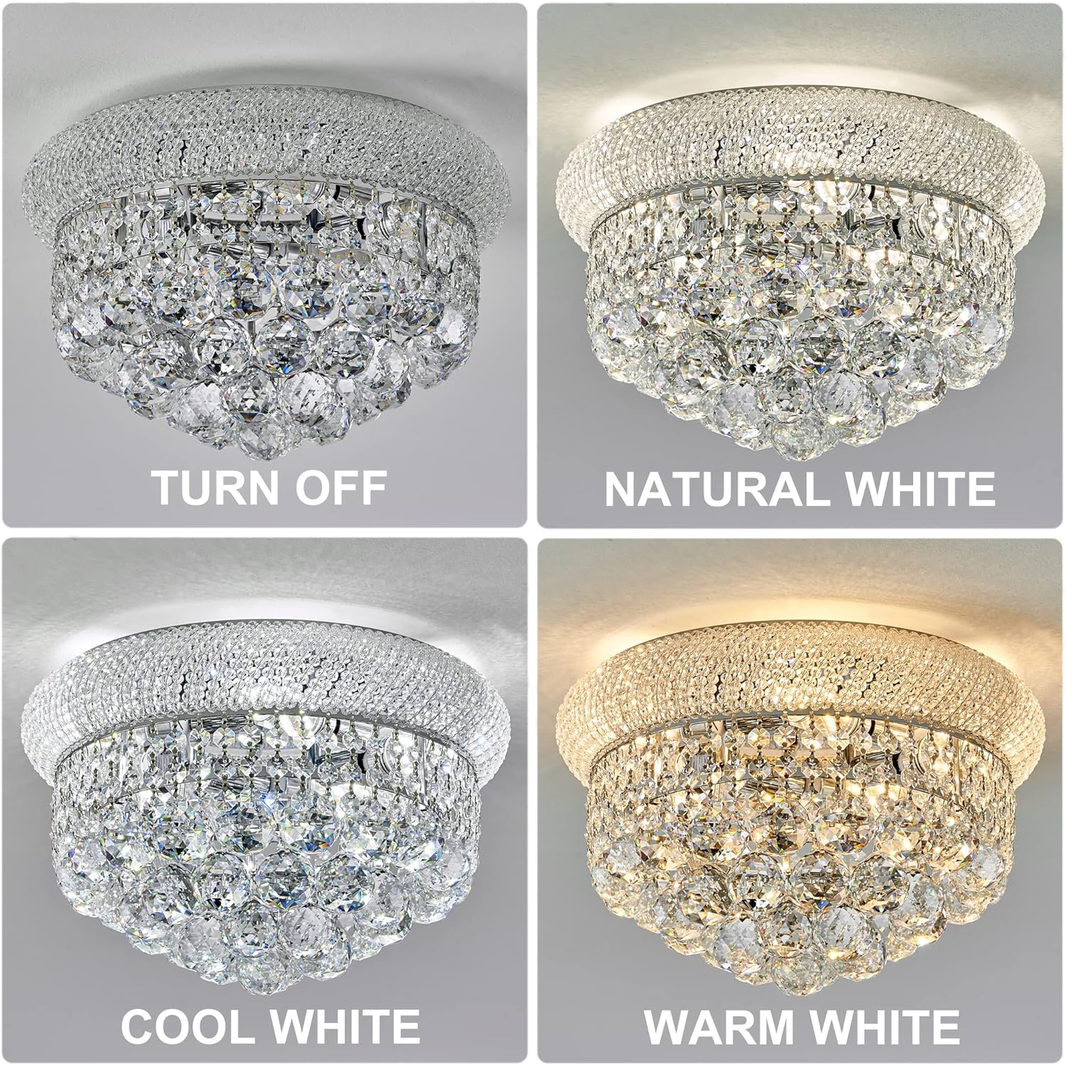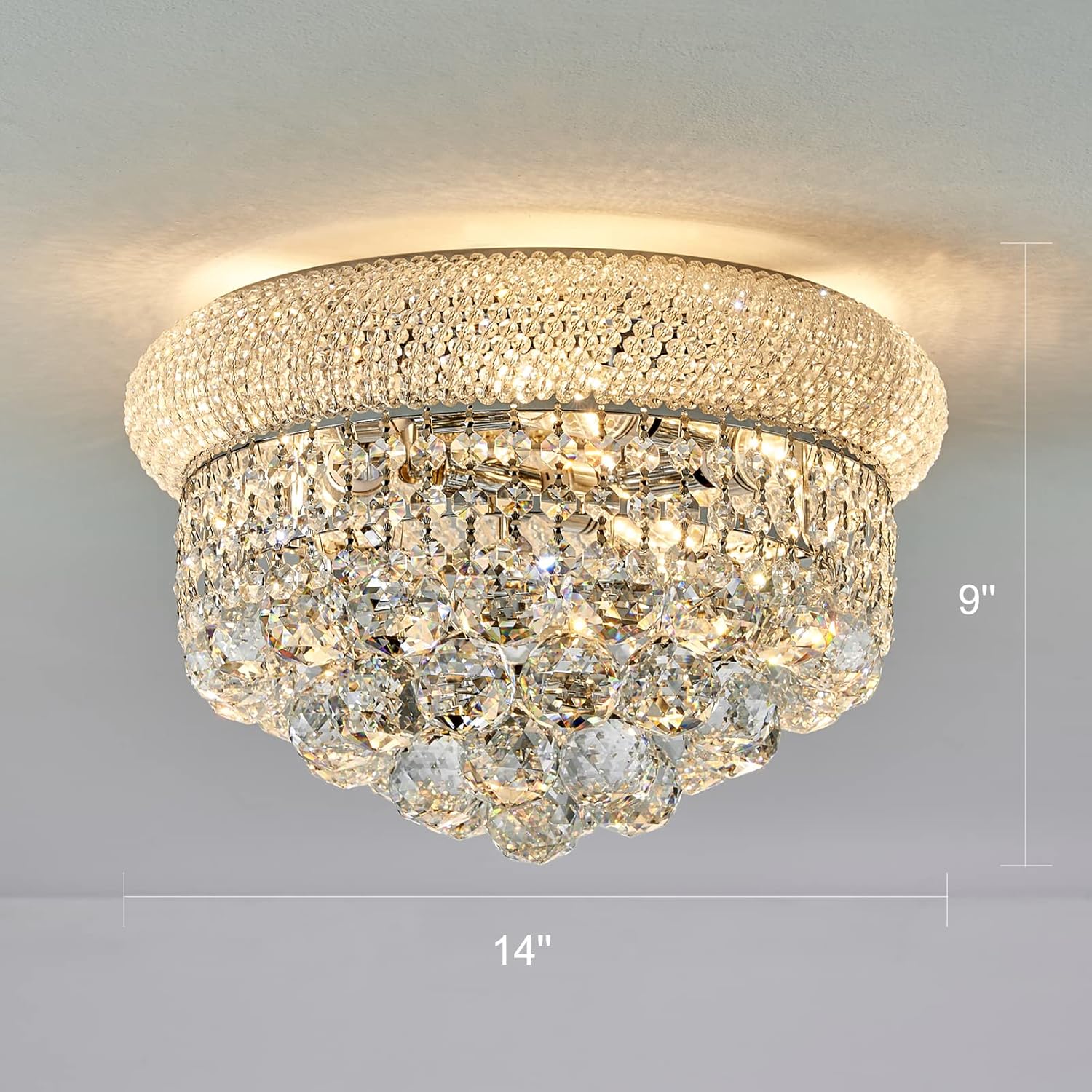 Crystal Flush Mount Chandelier Ceiling Light Fixture for Living Room Dining Room Bedroom Foyer Entryway Hallway Closet Bathroom (Chrome, 9" H x14 D)