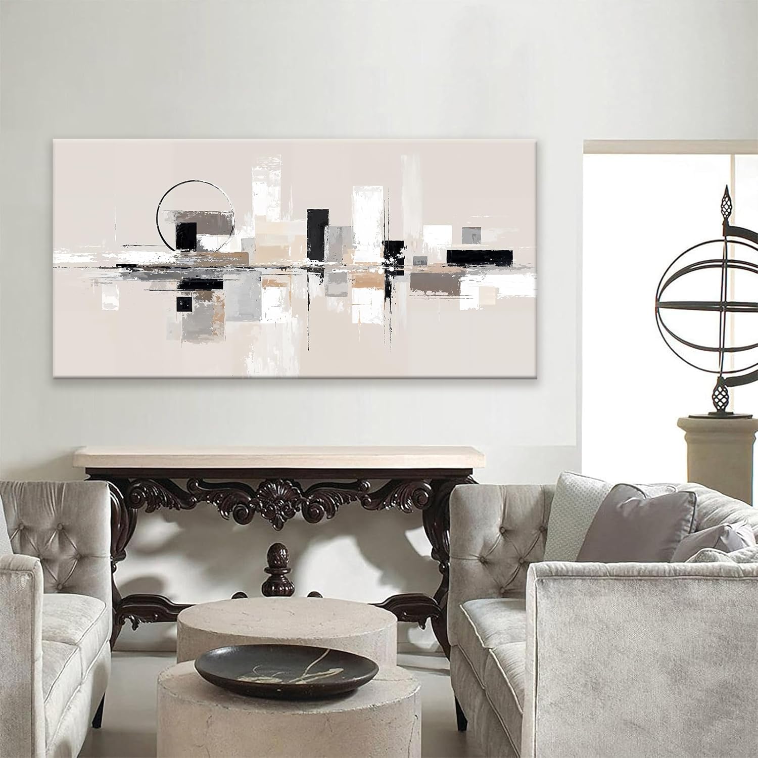 QSQ Abstract Wall Art Black White Wall Art Painting Grey Brown Canvas Art Wall Decor Prints Minimalist Abstract Wall Decor For Living Room Bedroom Kitchen Office Home Decoration 24" × 48"