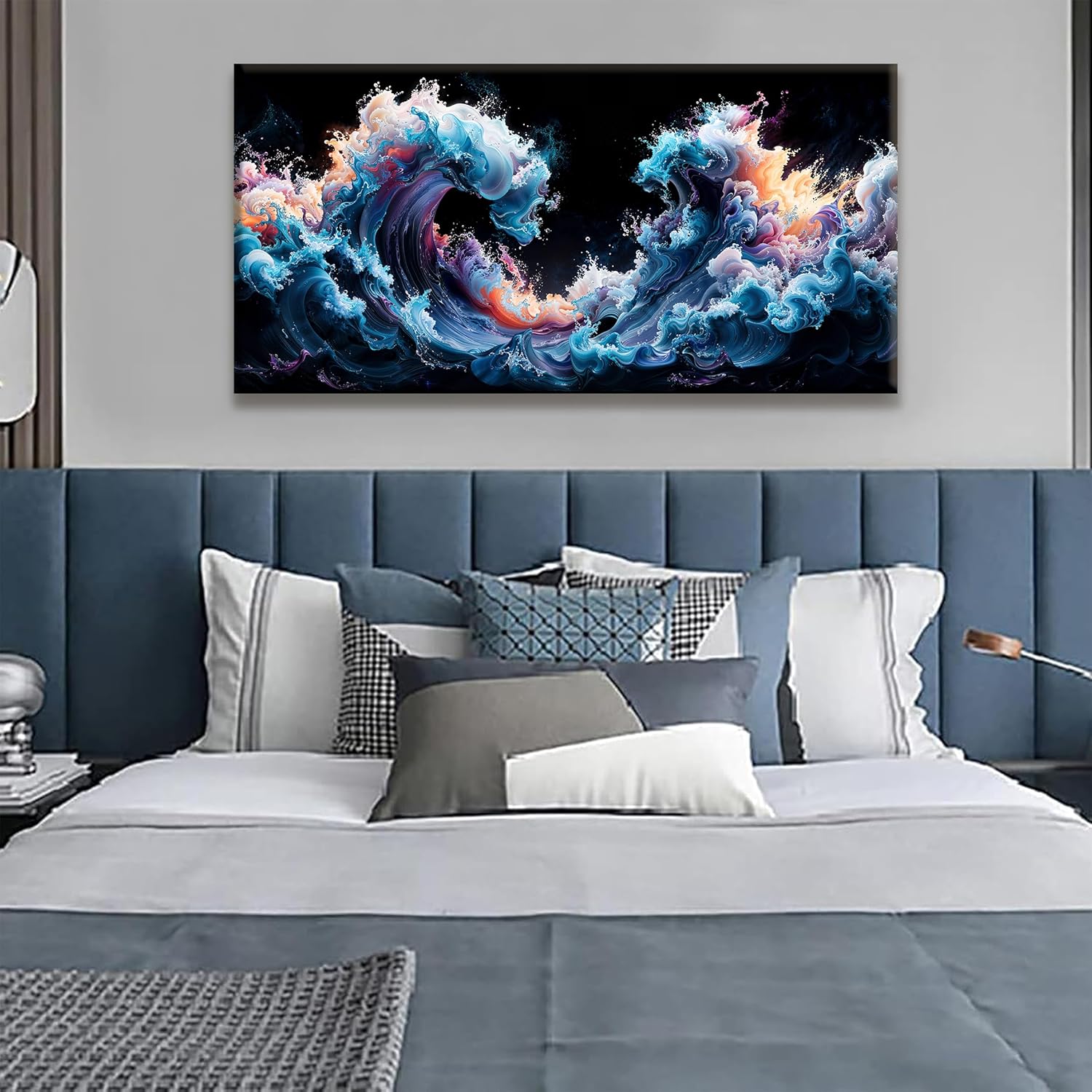 QSQ Canvas Art Wall Decor Colorful Waves Abstract Wall Art For Living Room Modern Canvas Prints Pictures Colorful Wall Art Picture For Bedroom Hotel Home Wall Decor 24 X 48 Inch