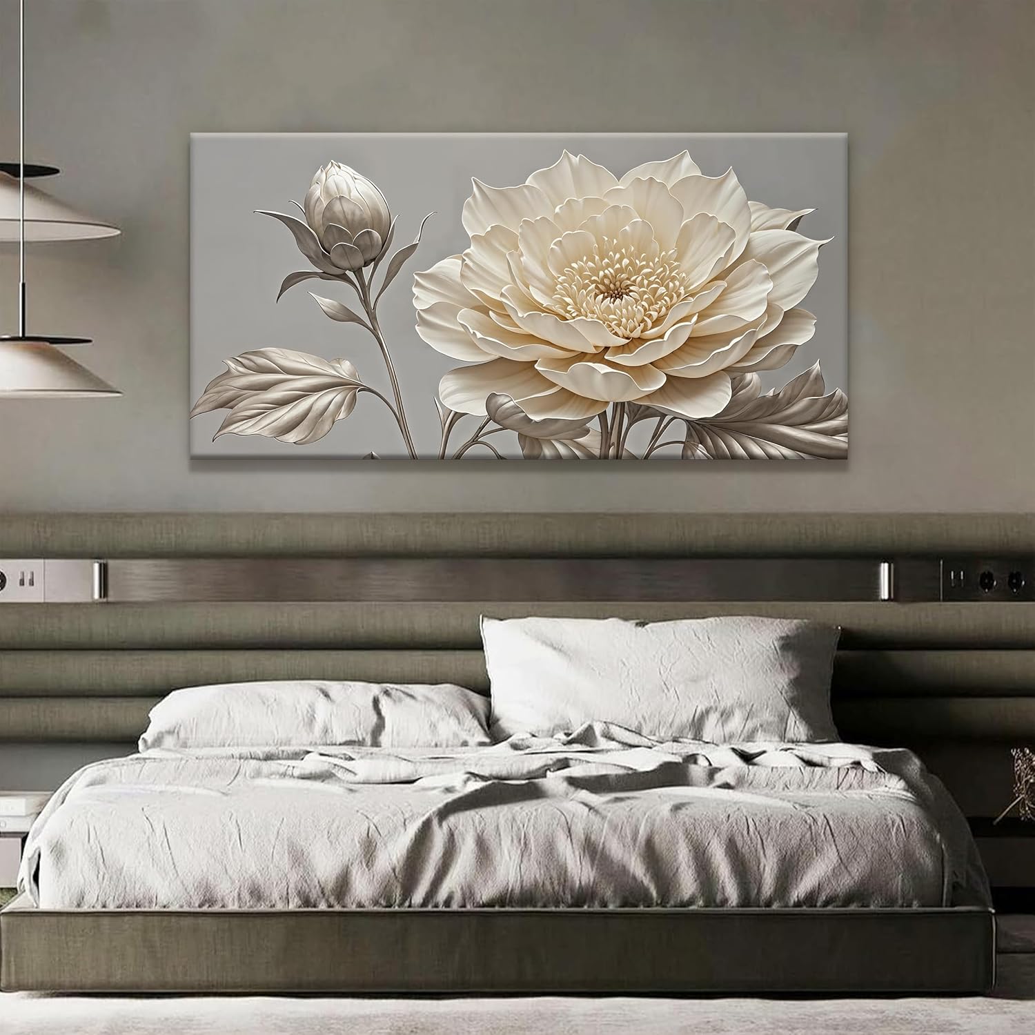 QSQ White Wall Art For Living Room Silver White Flower Wall Art Print Modern Canvas Art Wall Decor Home Decor Suitable Pictures For Bedroom Apartment Office Can Be Hung 24" X 48"