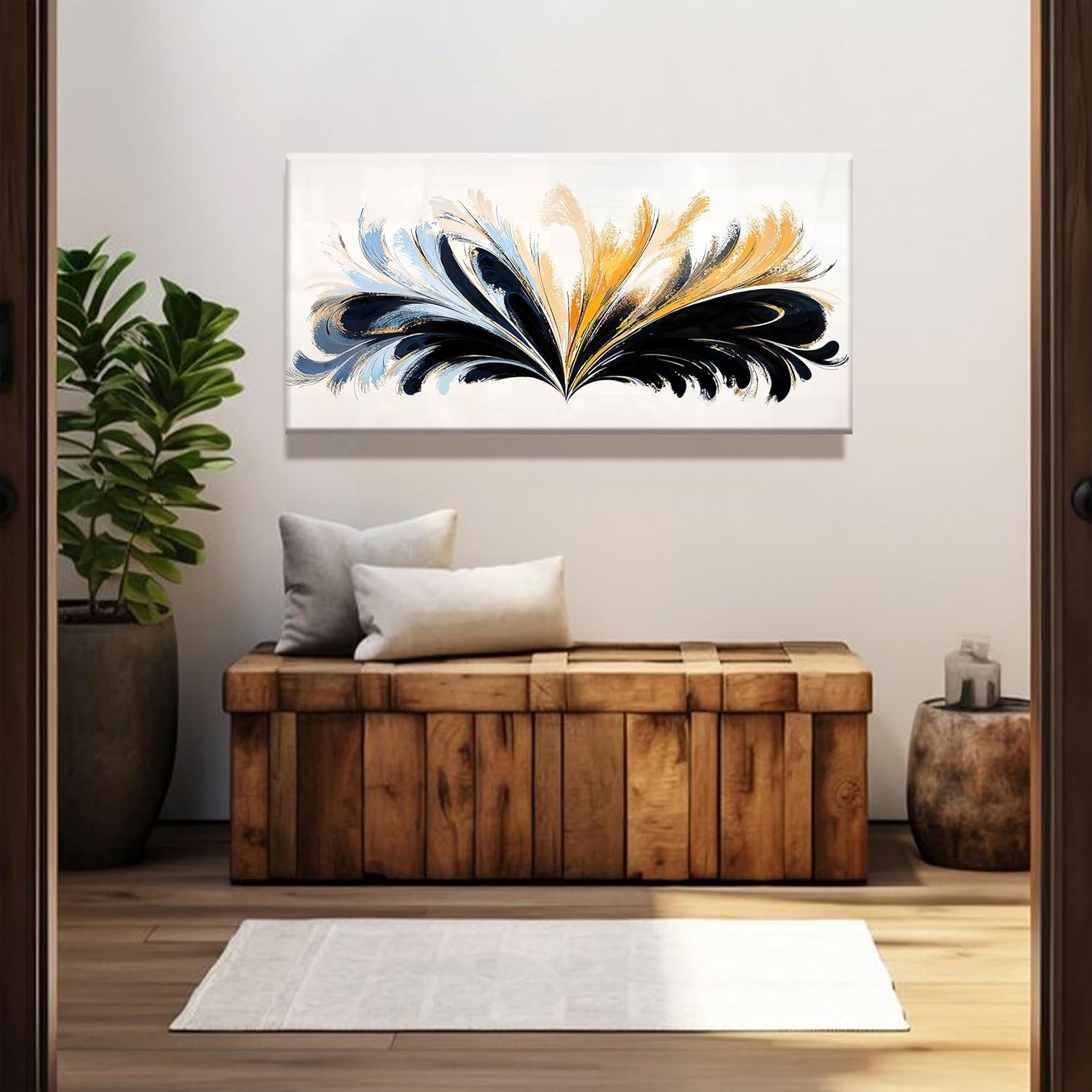 QSQ Black And Gold Abstract Wall Art Print Painting Canvas Art Wall Decor Artwork Abstract Blue Feather Wall Decor Pictures For Bedroom Kitchen Office Artwork 20 X 40 Inch Ready To Hang