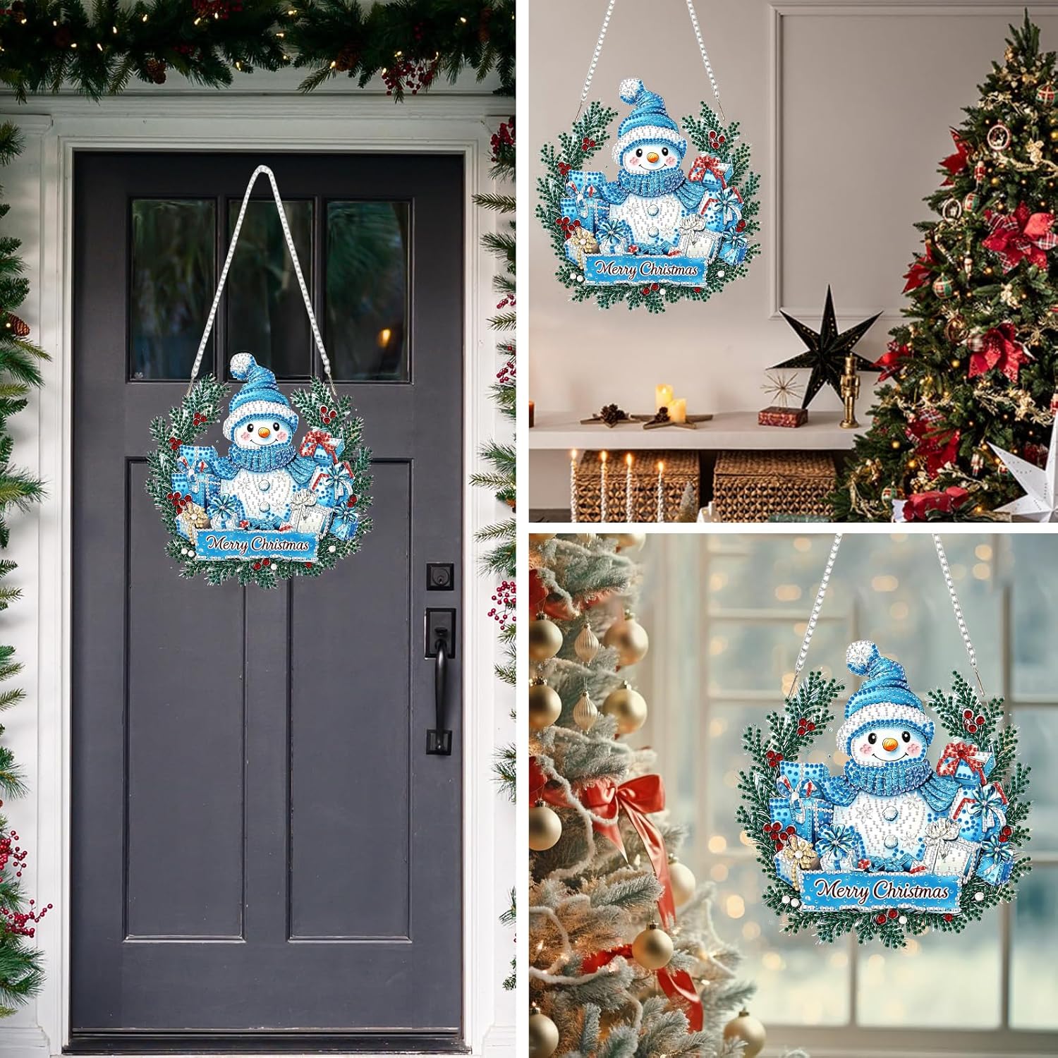 MEIYUDA Christmas Hanging Diamond Art Kits for Adult, Snowman Wreath Diamond Painting Hanging Kits Ornaments, DIY Special Shaped Rhinestone Window Pendants kit for Home Garden Wall Decor Gift