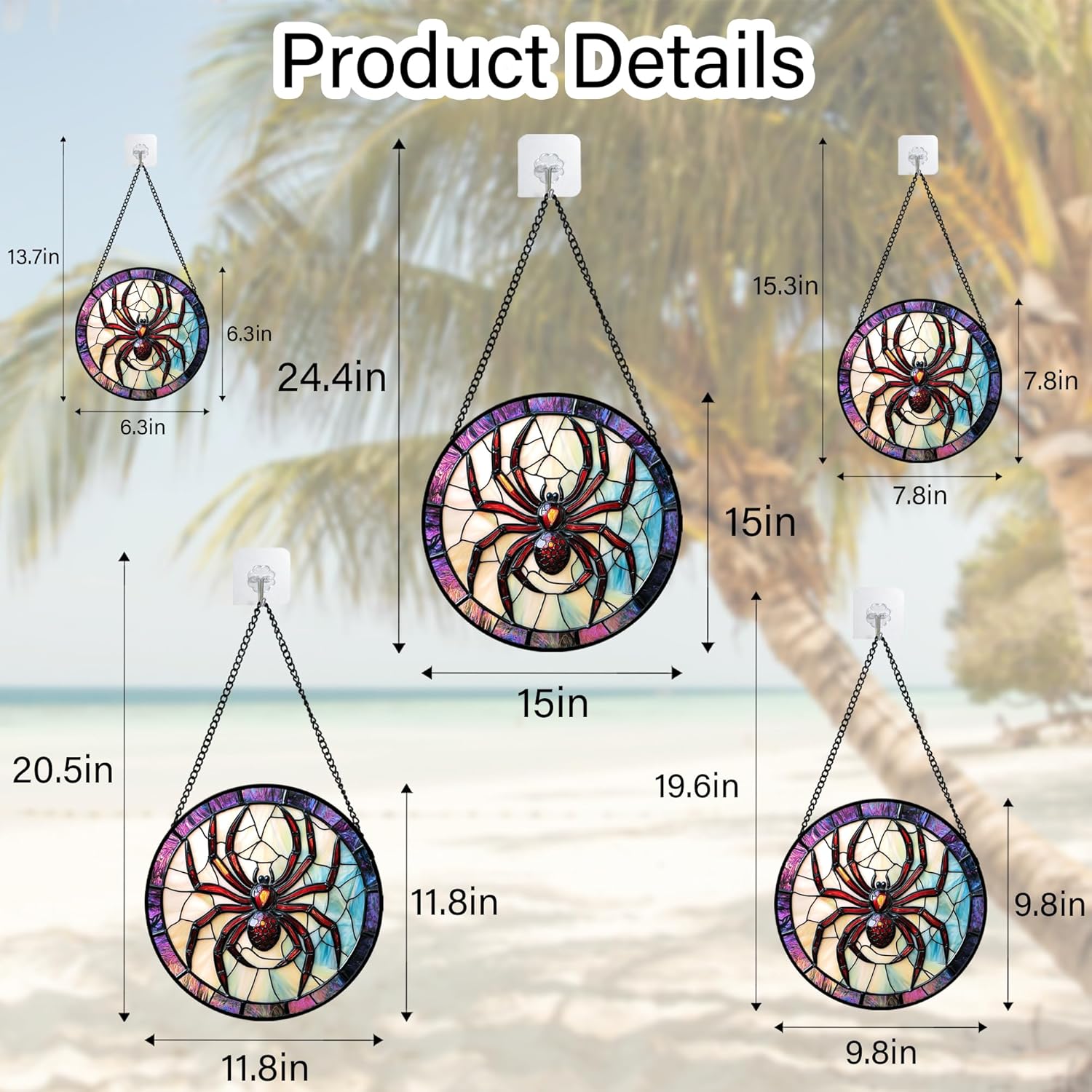 Stained Glass Window Hanging - Halloween Decorations Red Spider Goth Suncatcher for Doors Garden Indoor Funny Spooky Sun Catchers Gothic Decor Horror Gifts for Women Men Friend 9.8 in
