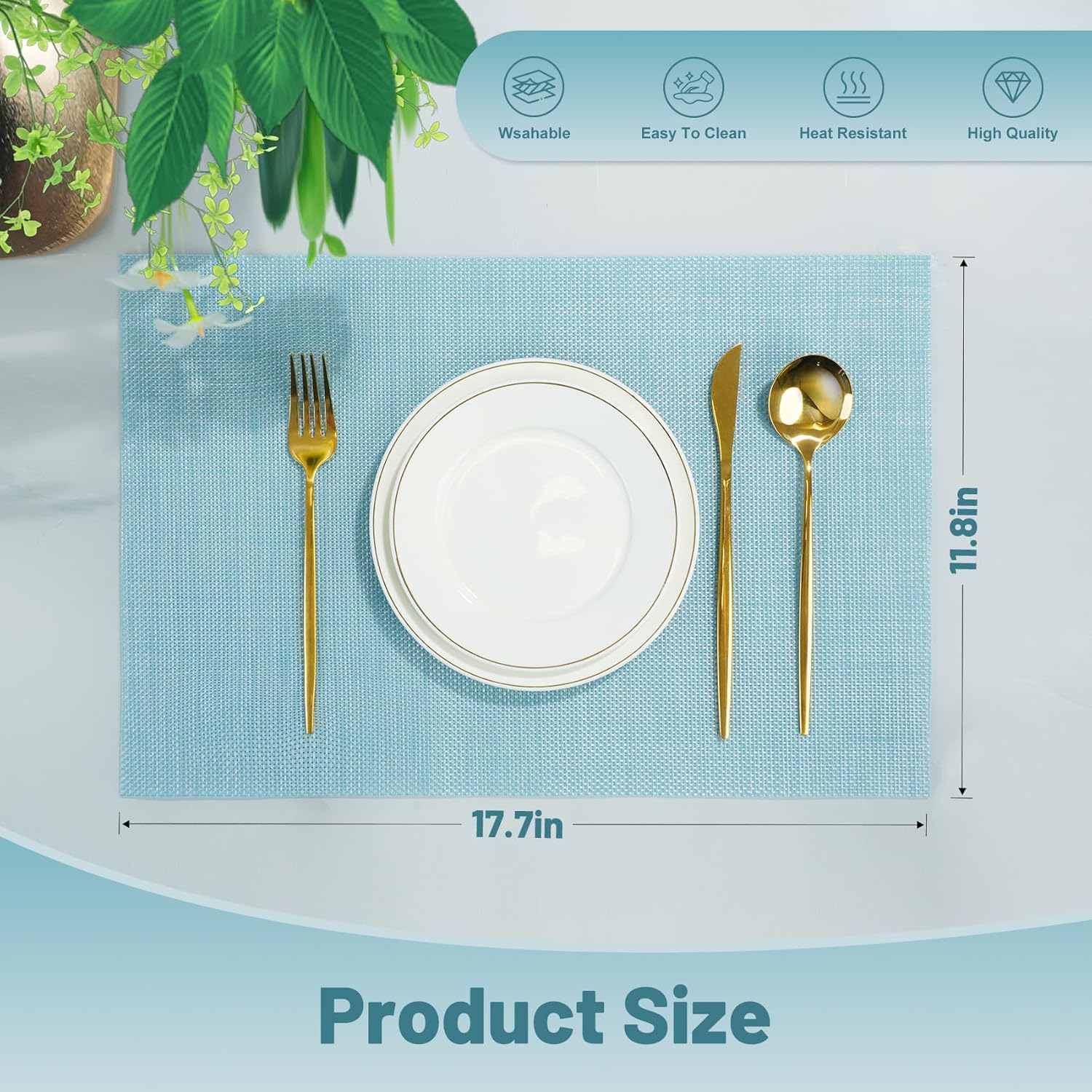 - 【High-quality Material】——Our placemats are made of 70% PVC and 30% polyester,placemats effective heat resistance of approximately 212°F(100℃) making them both durable that are protect your dining table while making mealtime more enjoyable.