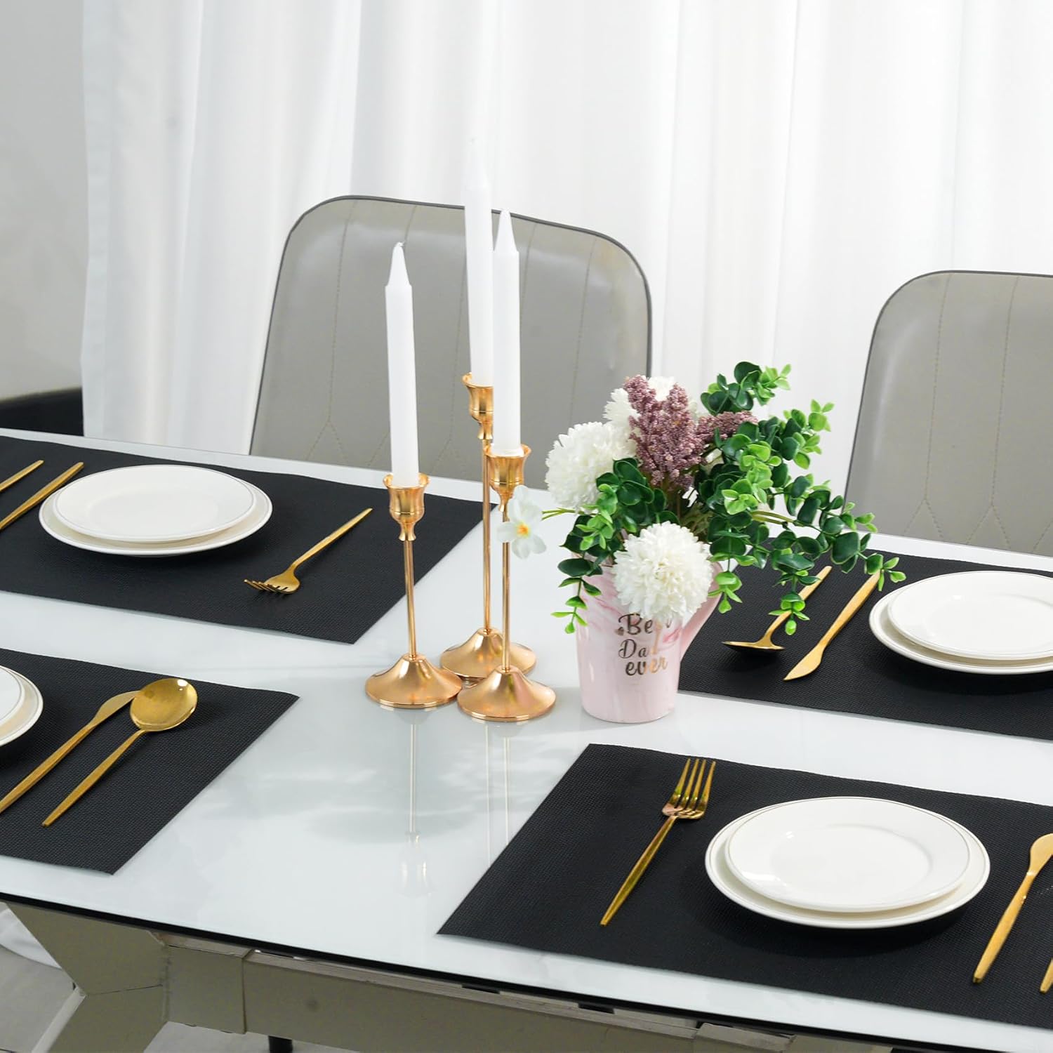 Placemats Set of 6,Non-Slip PVC Weave Table Mats Easy to Clean,Heat Resistant Place Mats for Kitchen Dining Table Decoration Indoor Outdoor,Black