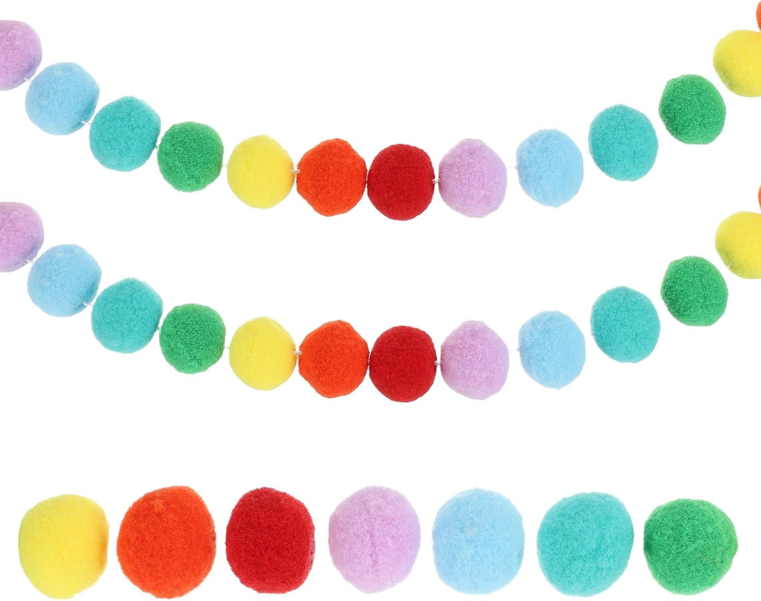 - Specification: Color: Multicolor; Material: Polyester, Cotton; Total Length: 4m/13.1Yards(2m each pcs); Pompoms Diameter:2.5cm/0.98Inch; Packing List: 2Pcs x Pom Pom Garland Decorations(Each string of 30 balls)