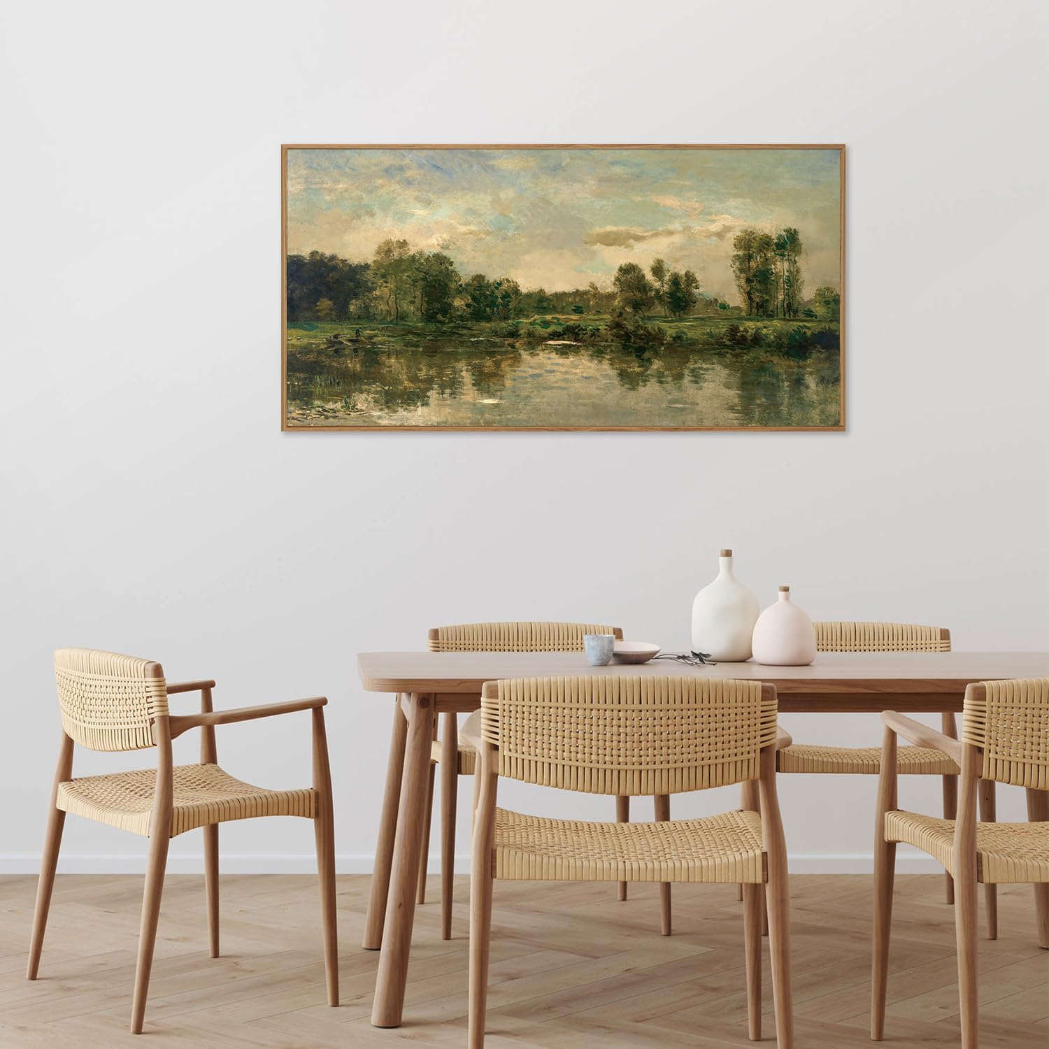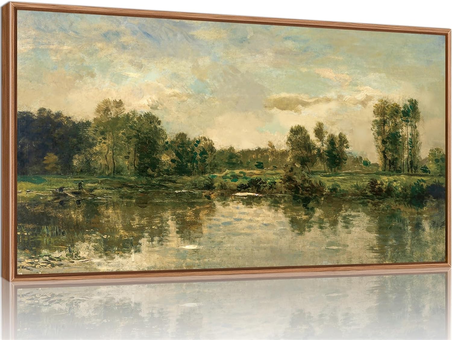 Tinonedraw Vintage Nature Framed Canvas Wall Art Set of 3, French Country Wall Decor, Rustic Landscape Farmhouse Art Paintings, Olive Green Trees Art Prints for Living Room Bedroom Office 20"x40"