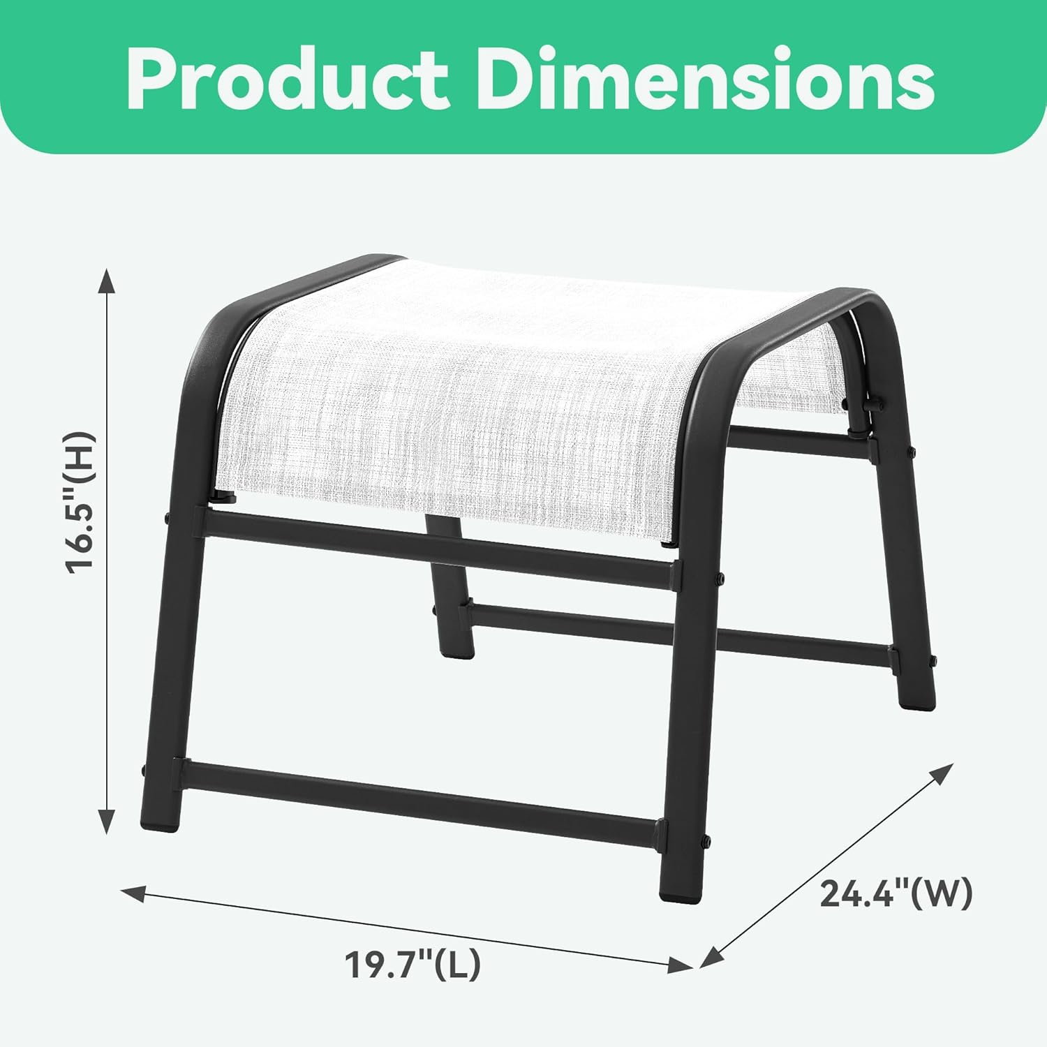 - Sturdy&Durable: The outdoor foot rest for patio is coated with fine brushed plastic spray coating, its more anti-slip and wear-resistant. Textilene is corrosion resistant and suitable for outdoor environments. Seat supports up to 250 pounds