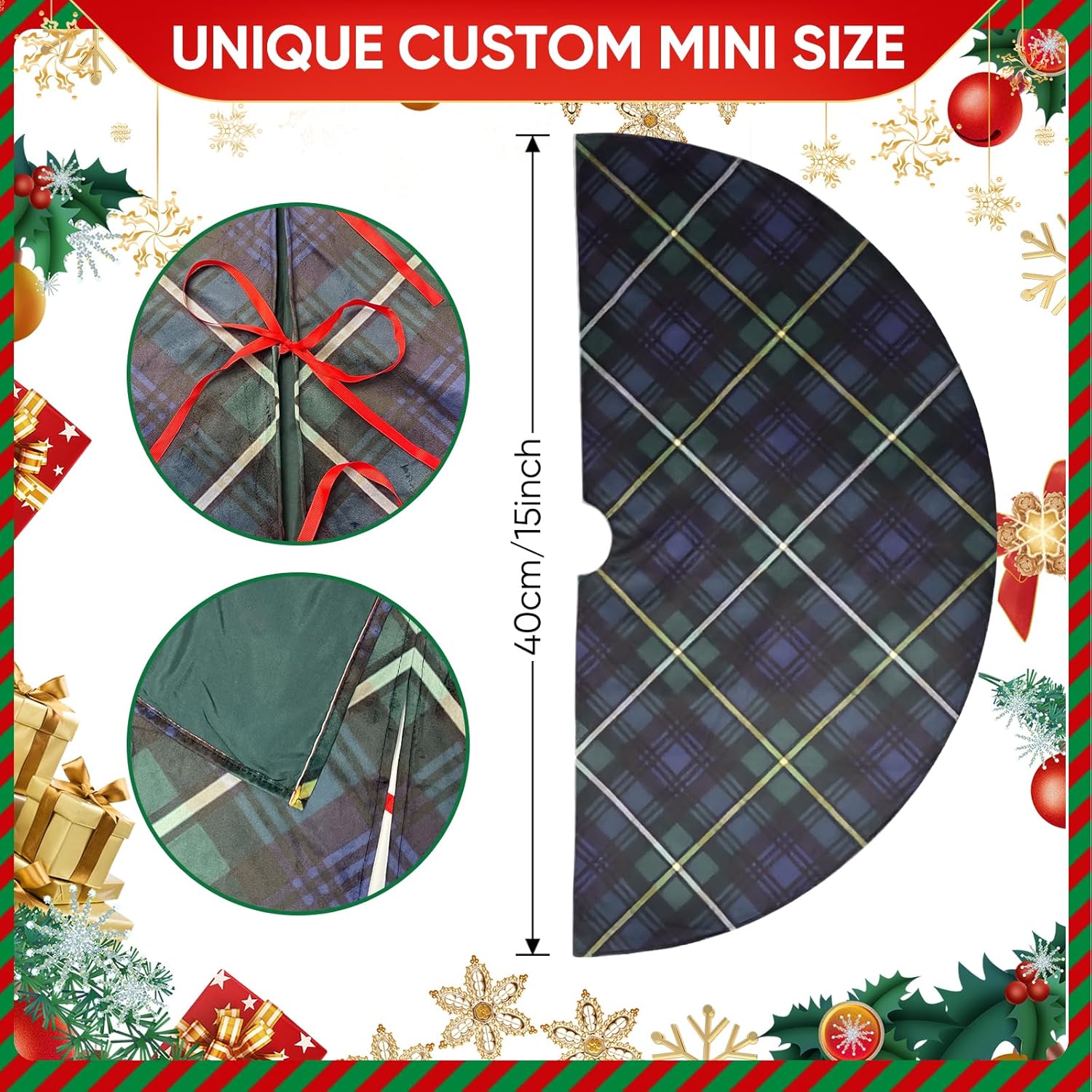 Mini Christmas Tree Skirt 15 Inch – Campbell Clan Tartan Navy Blue and Green Plaid Tree Mat for Small, Pencil, or Desktop Xmas Trees, Scottish Holiday Decor for Desk, Office, Shelf, or Compact Space