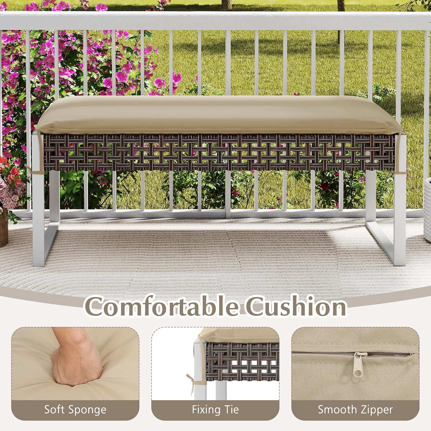 Tangkulka Outdoor Ottoman, Patio Rattan Heavy Duty Wicker Footrest with Soft Cushion & Metal Frame, Extra Seating, for Porch, Backyard, Lawn and Poolside (2)