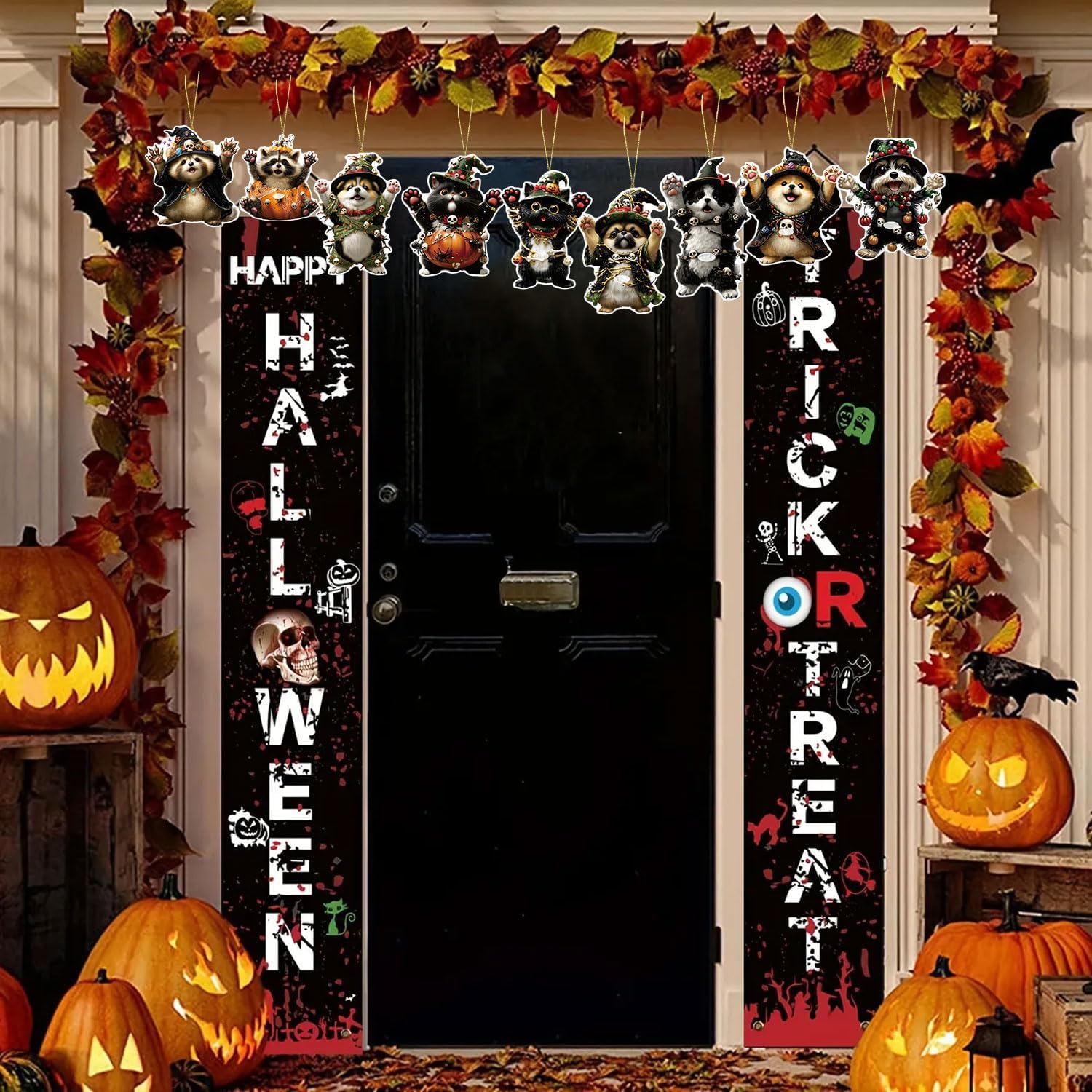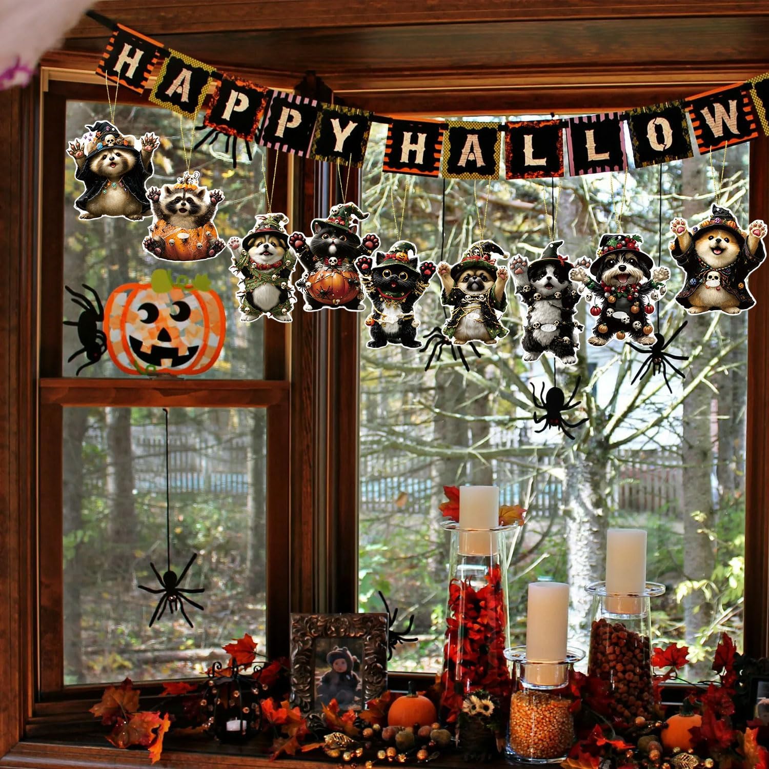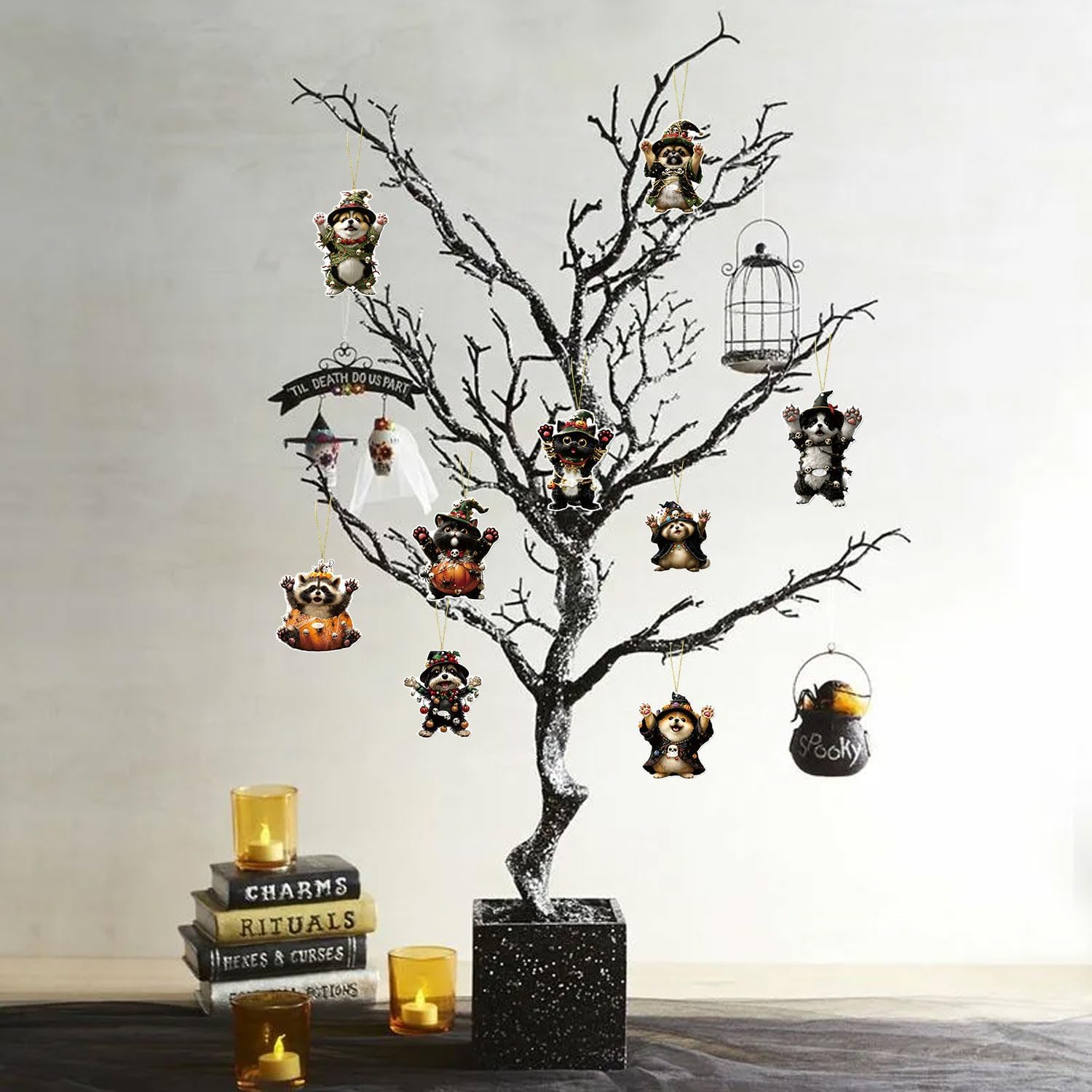 Halloween Tree Decoration,9 Pcs Funny Raccoon Acrylic Pendant, Terror Cartoon Animal Halloween Accessories, Funny Cartoon Christmas Tree Hanging Ornaments for Indoor Outdoo