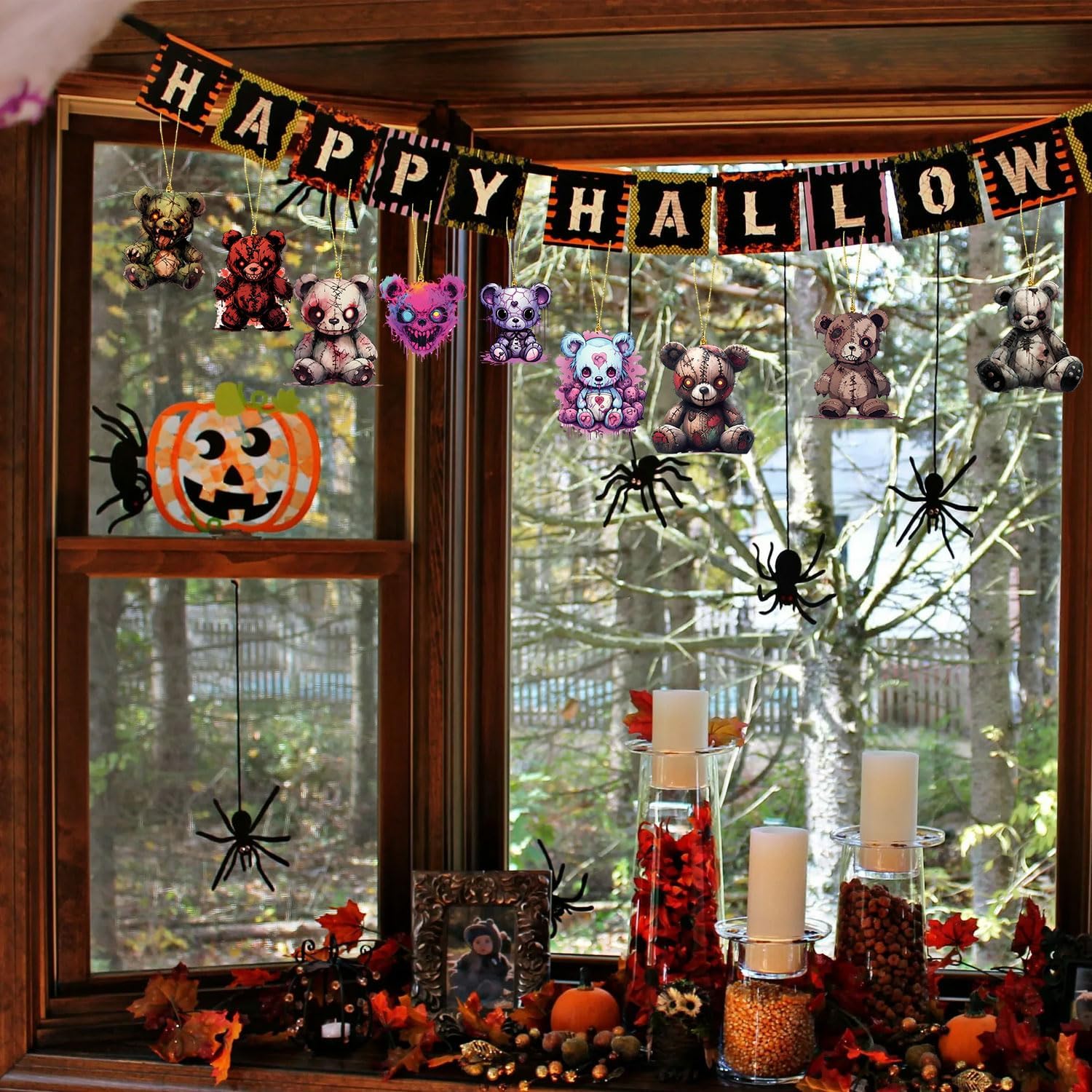 Halloween Tree Hanging Ornaments, 9 Pcs Cute Acrylic Pendant, Terror Bear Halloween Accessories, Funny Cartoon Christmas Tree Decoration for Mini Characters Decorations Indoor Outdoo