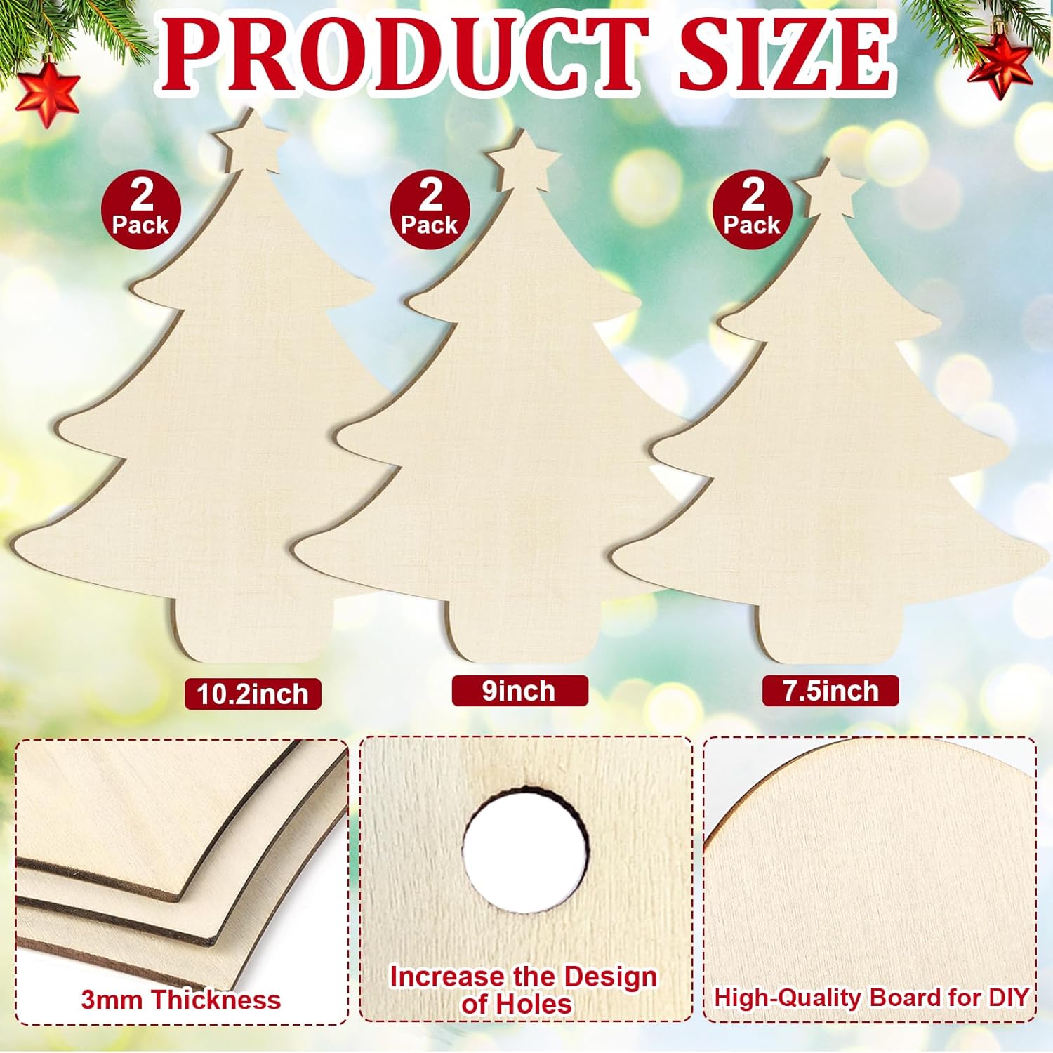 Wooden Christmastree Ornaments for Paint Christmas Decorations Cutouts Unfinished 6Pack, Wood Christmastree for Crafts DIY Blank Cutouts Ornament Winter New Year Decorations 3 Size