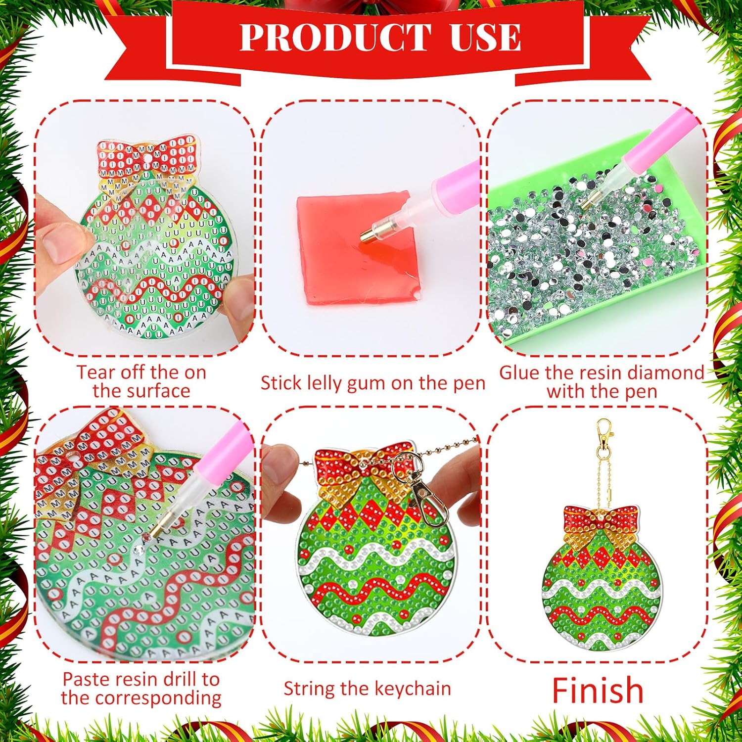 - Easy to Use: our Christmas delicate diamond keychains allow you to hang your keychains securely on your bag or purse, so you don't have to worry about losing them; In addition, trays allow you to arrange diamonds in order, while glue and drill pens help you stick diamonds in the right place