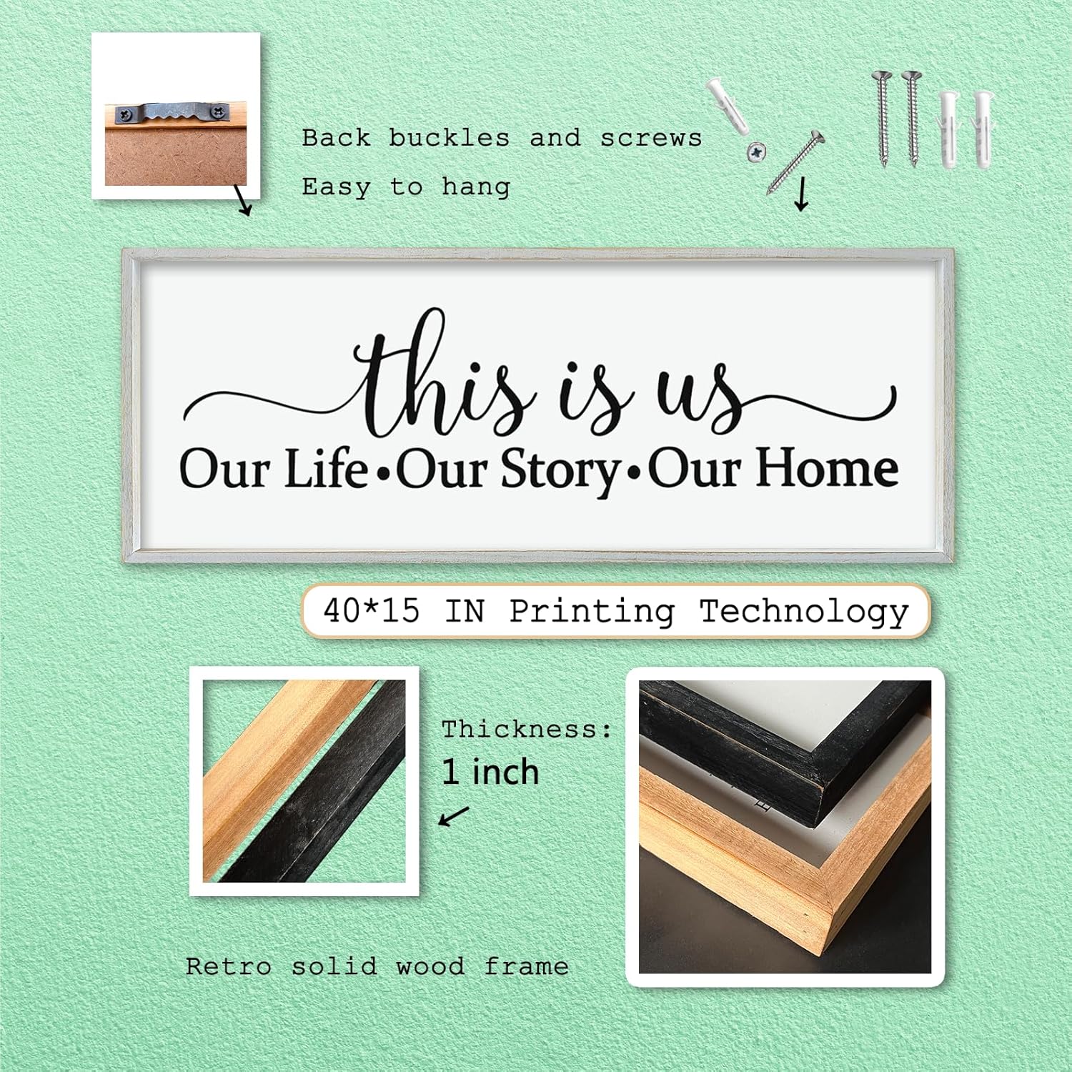 LuZhiQiang This Is Us Sign Wall Decor 40"×15" for Bedroom Family Sign Large Framed Wooden Wall Hanging Art (White)
