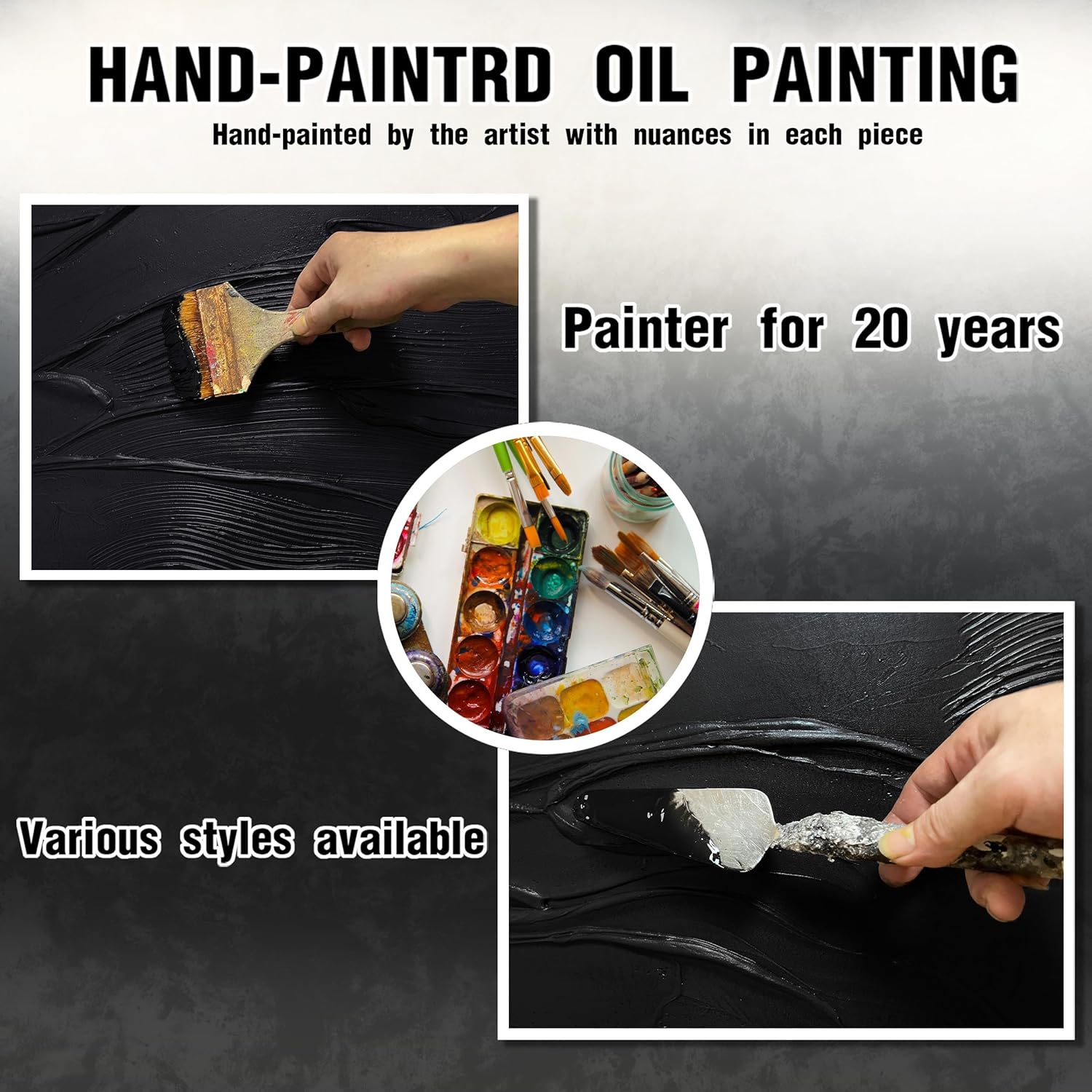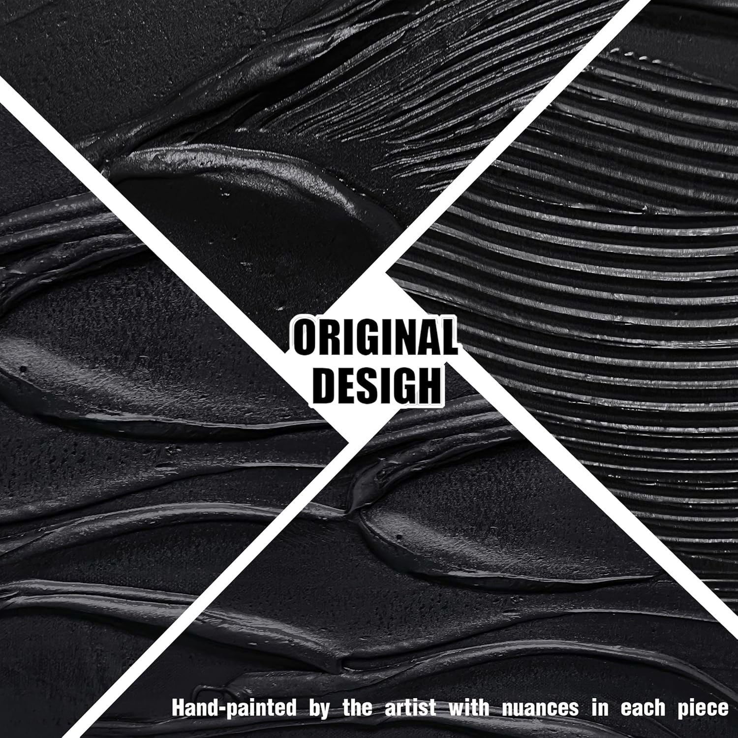 Modern Wall Decor For Bedroom Abstract Hand-Painted Oil Painting For Living Room Black Canvas Wall Art For Home Office Size 24 x 47 Inch