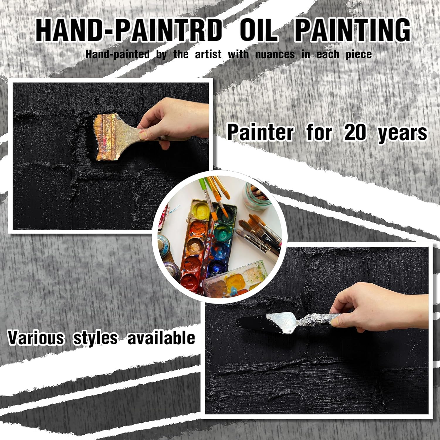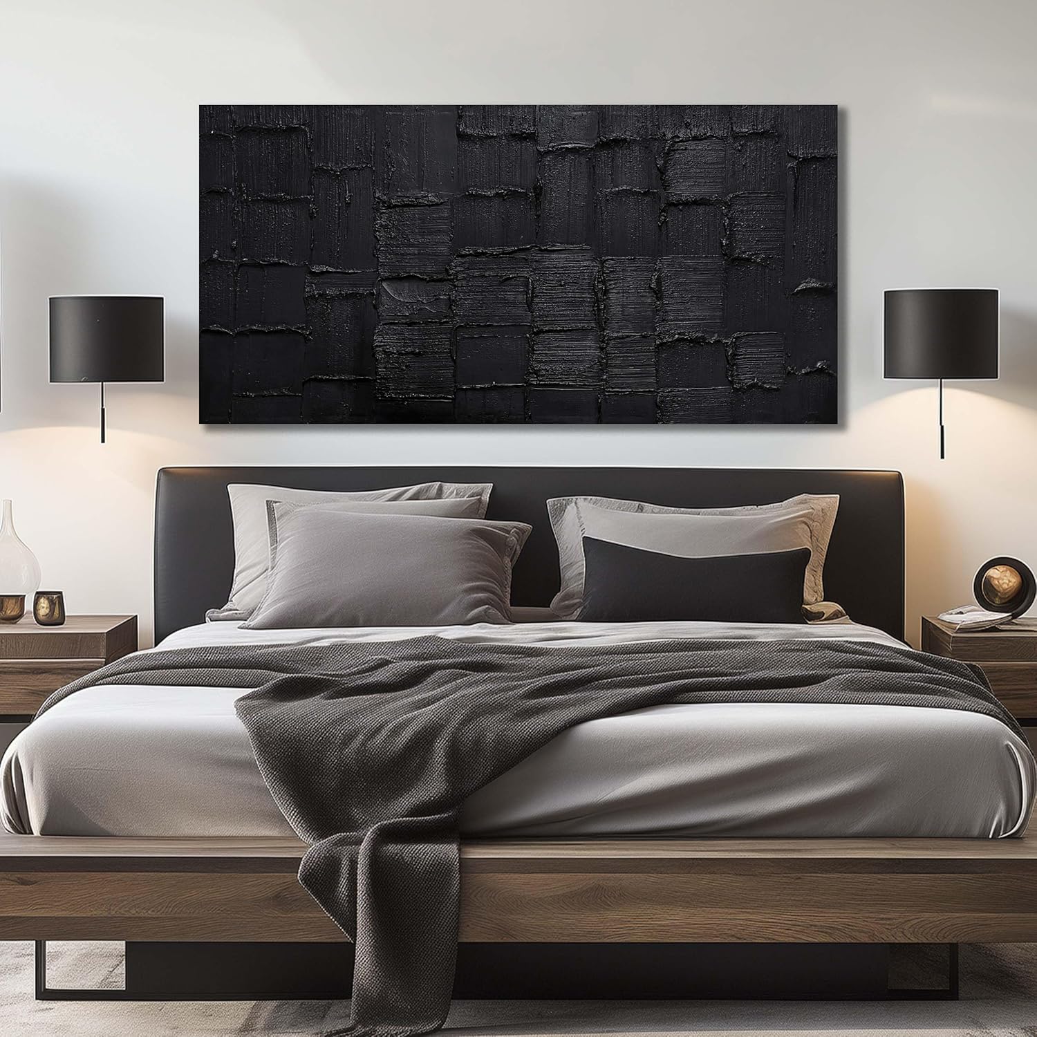 - 【Canvas Mural Size】Titled "black Abstract" The Size is 29" x 58". Since each painting is hand-painted, the actual painting may differ slightly from the product image. Due to different monitor brands, the actual wall painting color may be slightly different from the product picture.