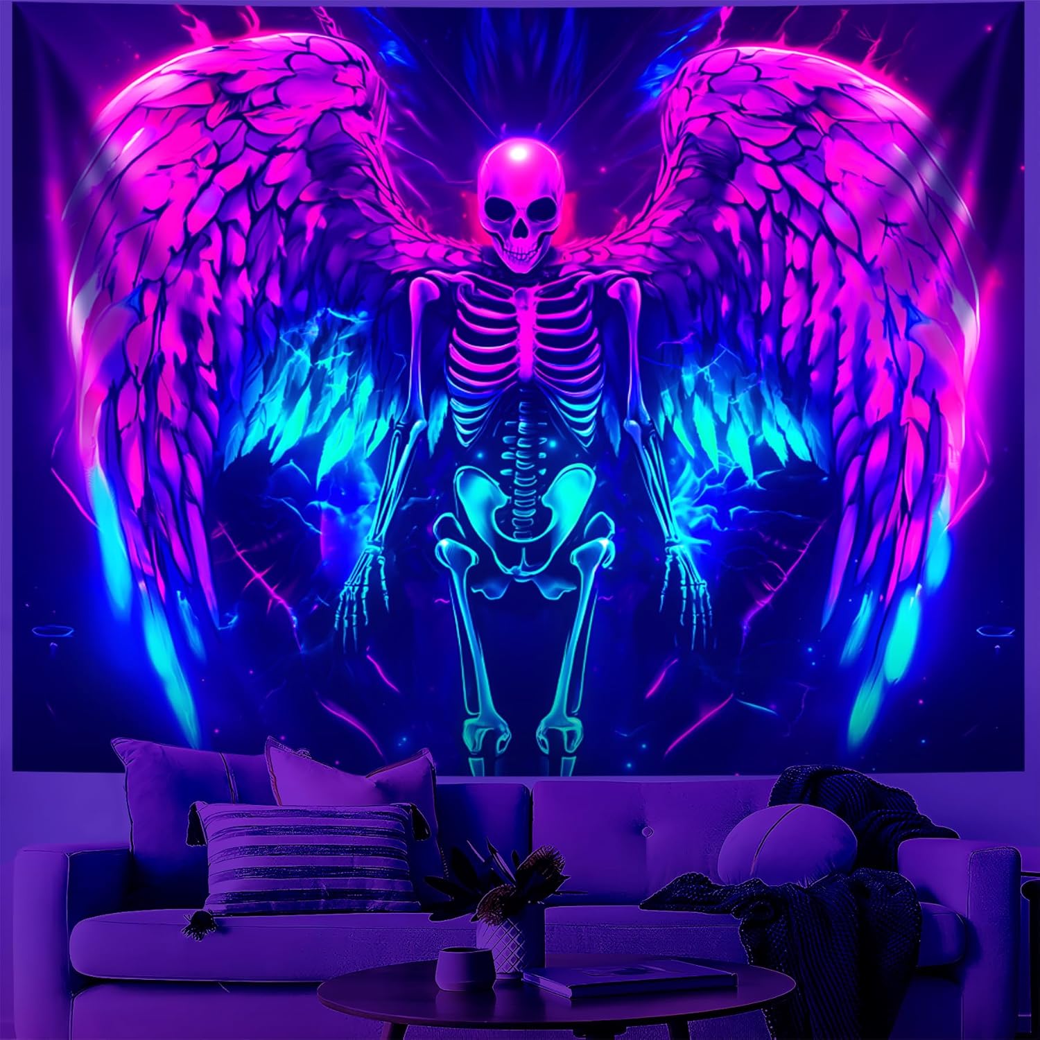 Blacklight Tapestry,WingTapestry Glow In The Dark,UV Reactive Black Light Upright Posters Wall Hanging for Bedroom Dorm Living Room Backdrop Decor (wing13, 90L" x 70W")