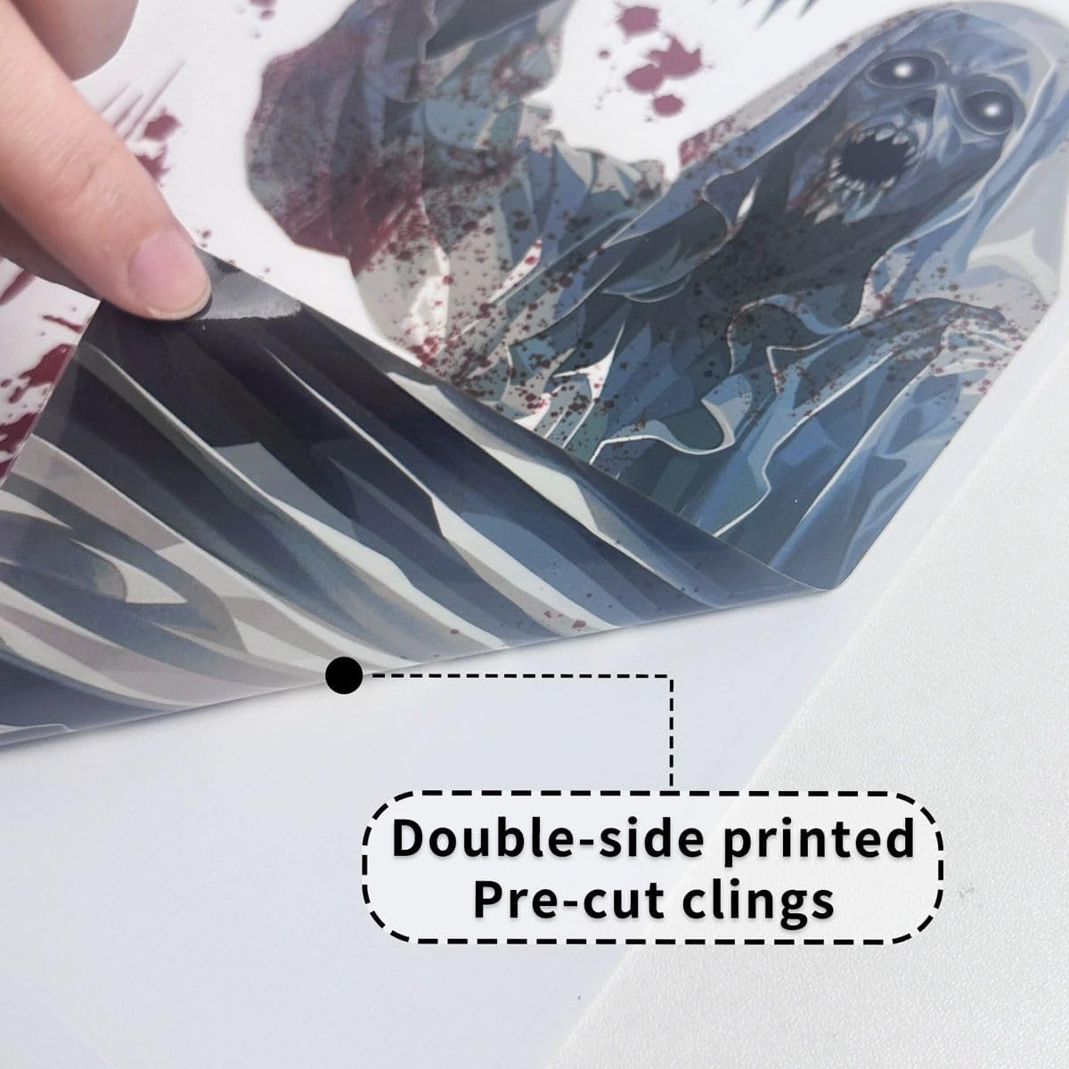 - [Double-Sided Printed]:This ghost window decals are made of static PVC material,and the double-sided printed scary halloween window sticker make them look creepy from the inside or outside of the glass.