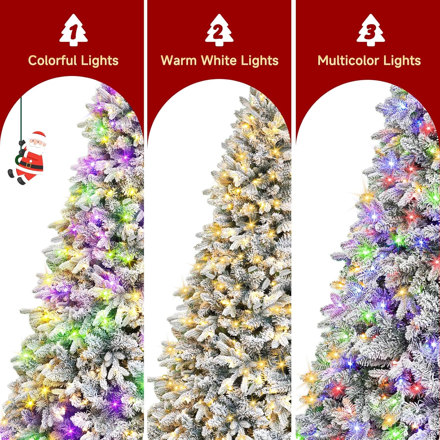 - Multi-Color LED Lights with Timer & Dimmer Remote – The prelit christmas tree enjoy 340+ energy-efficient LED lights in vibrant multi-color or warm white options. The remote control allows you to set a 2/4/6/8-hour timer, adjust brightness, and switch between 8 lighting effects (Steady on, Twinkle, Color Lights Steady on, Fast/Slow Flash, Chasing flash, Slow fade, Steady on, Repeating.) for the perfect holiday ambiance.