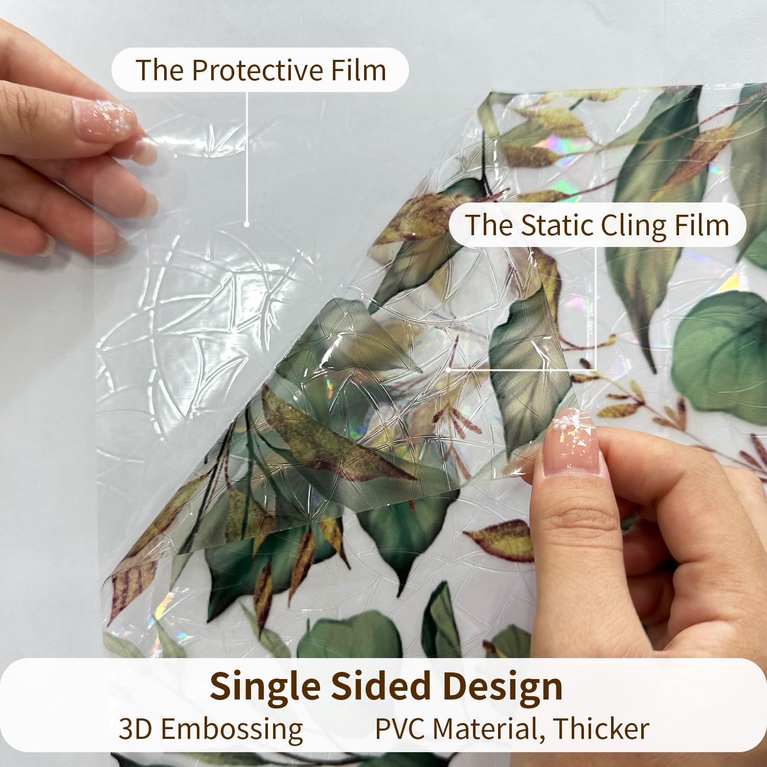 - 3D Rainbow Refraction: The privacy window film is designed by 3D Embossing process that can refract rainbow light. And the design of Spring & Autumn Leaves upgrades home aesthetics with light-filtering artistry and eliminates glare on light
