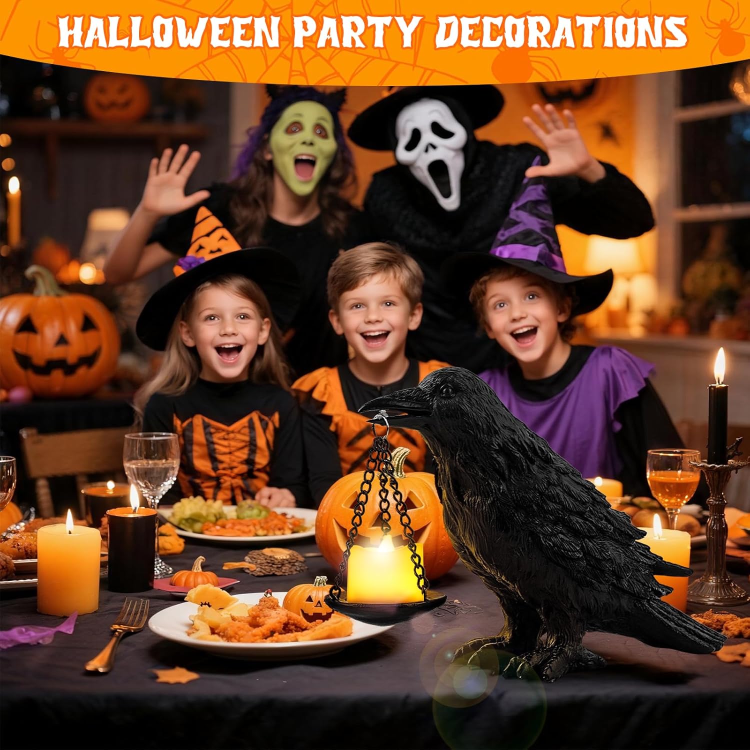 - 🕯️ Versatile Candle Holder: The black plate held by the crow lamp can be used as a tealight or fake candle holder, adding a flickering glow to your Halloween festivities. Perfect for creating a spooky atmosphere in any setting, from haunted houses to themed parties.