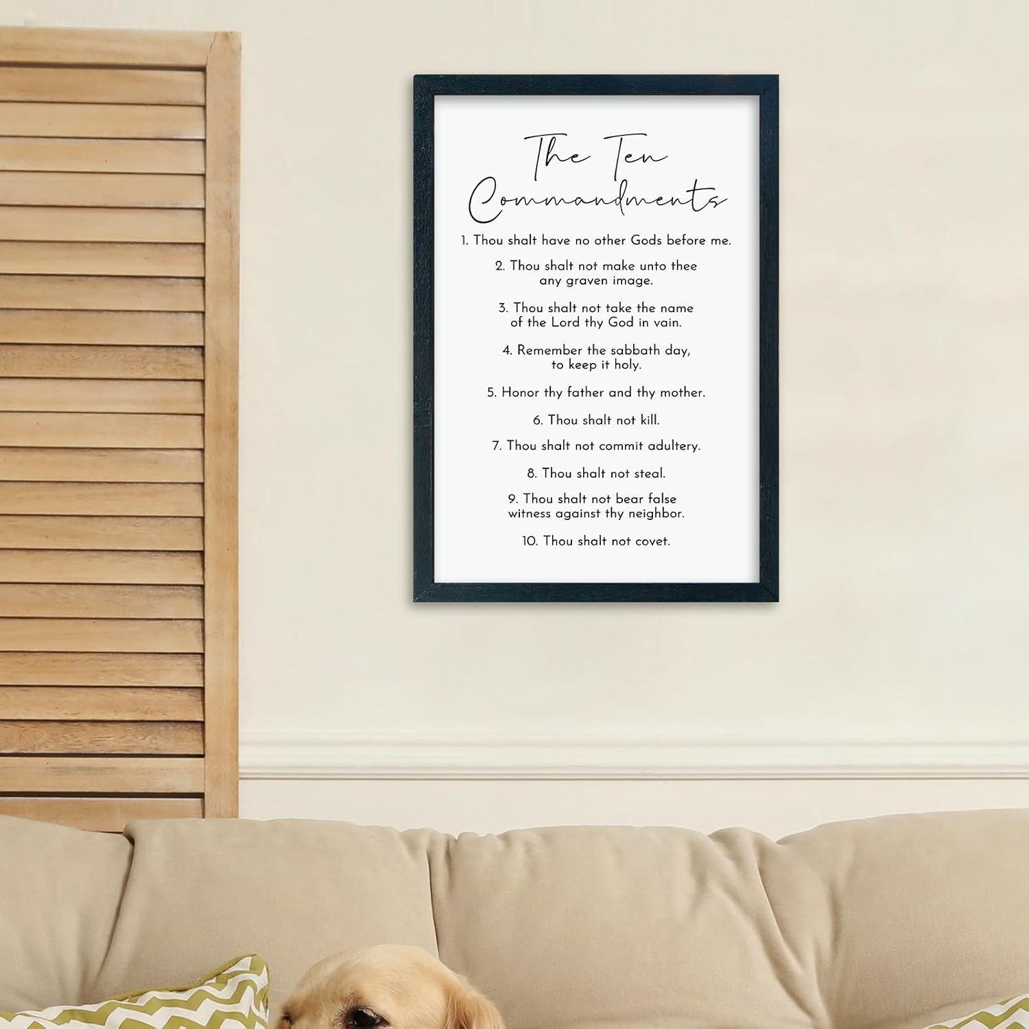 LuZhiQiang The Ten Commandments Wall Art Decor 16"×11" Bible Verse 10 Commandments Sign Motivational Positive Quotes Wood Framed Wall Hanging (Black)