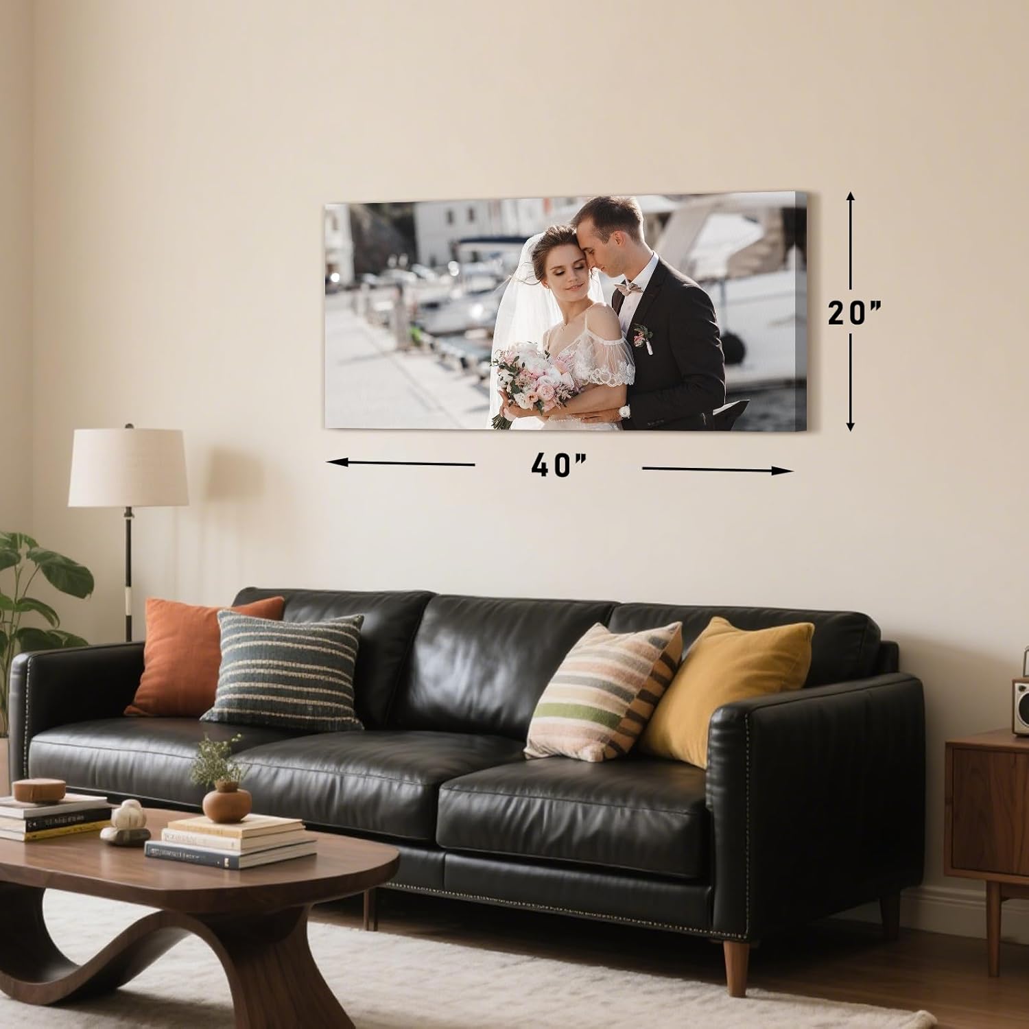 Personalized Custom Canvas Prints with Your Photos & Text, Customized Picture Print, Transform Own Images Into Framed Wall Art Digitally Printed Photo to Canvas, Keepsakes Gifts for Family 40x20’’