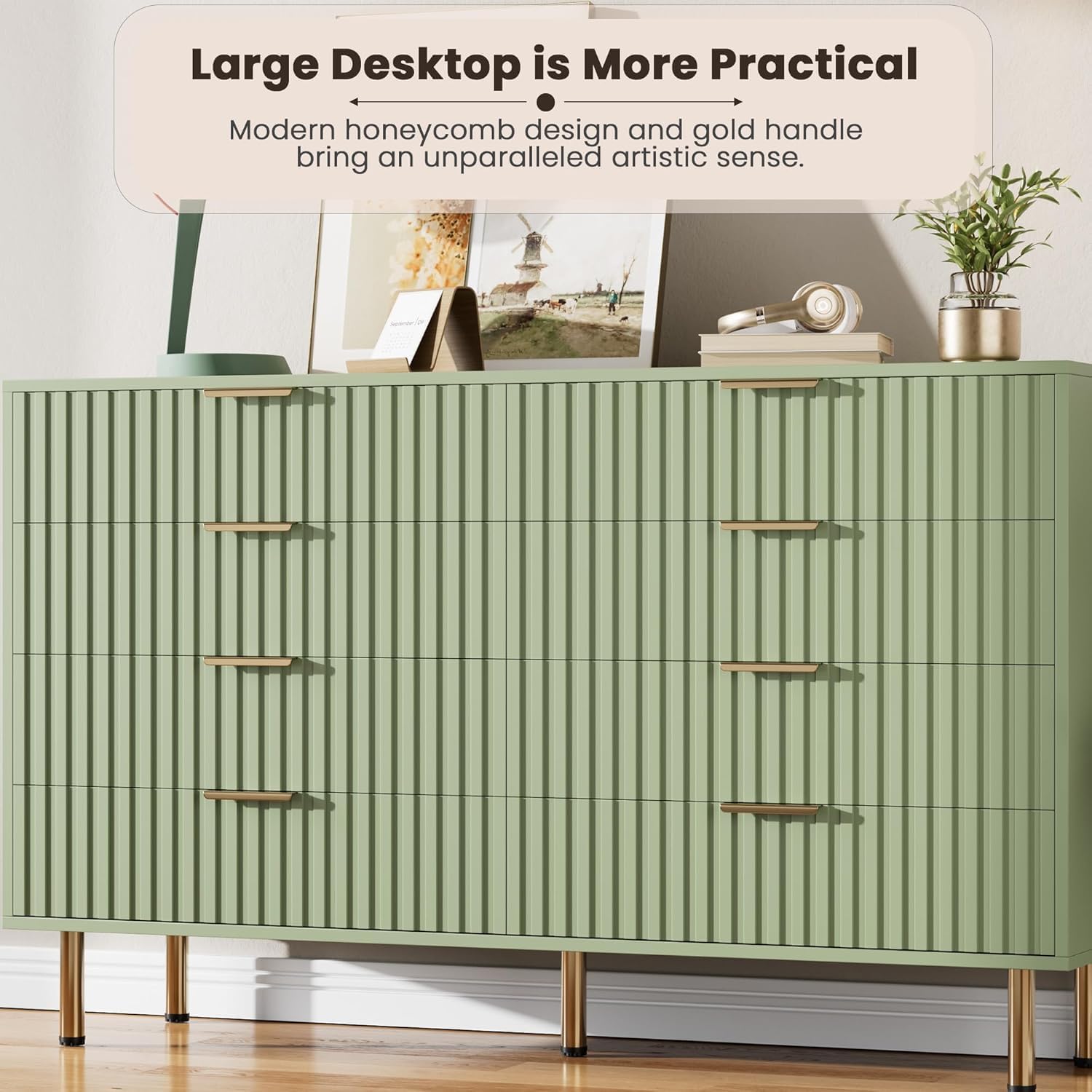 8 Drawer Dresser for Bedroom, Fluted 55" Wide Modern Chest of Drawers with Deep Drawers, Wooden Dresser Organizer for Living Room, Hallway, Kids Room, Green