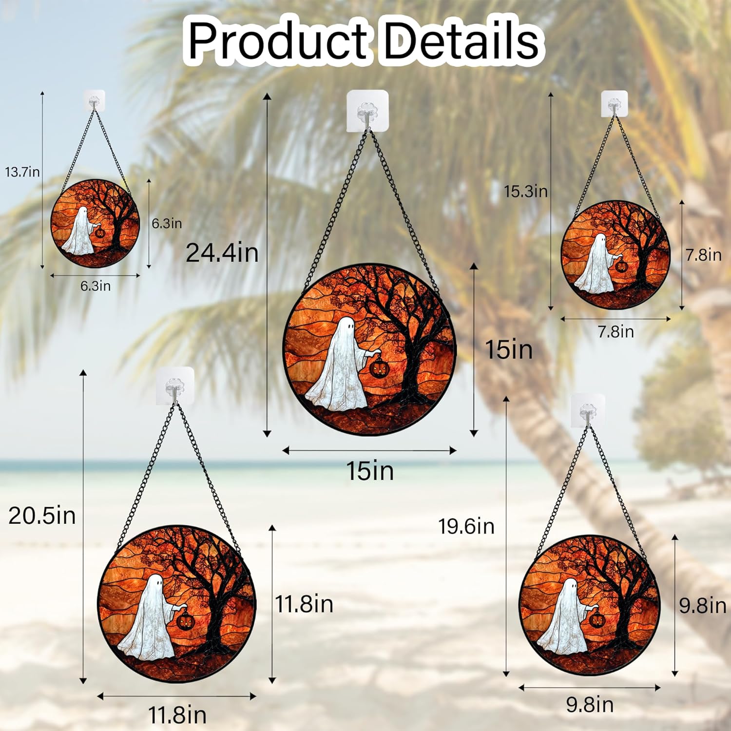 Stained Glass Window Hanging - Halloween Ghost Holding A Pumpkin Lantern Suncatcher for Door Garden Spooky Tree Sun Catchers Gothic Decorations Horror Gifts for Women Men Friend 7.8 in