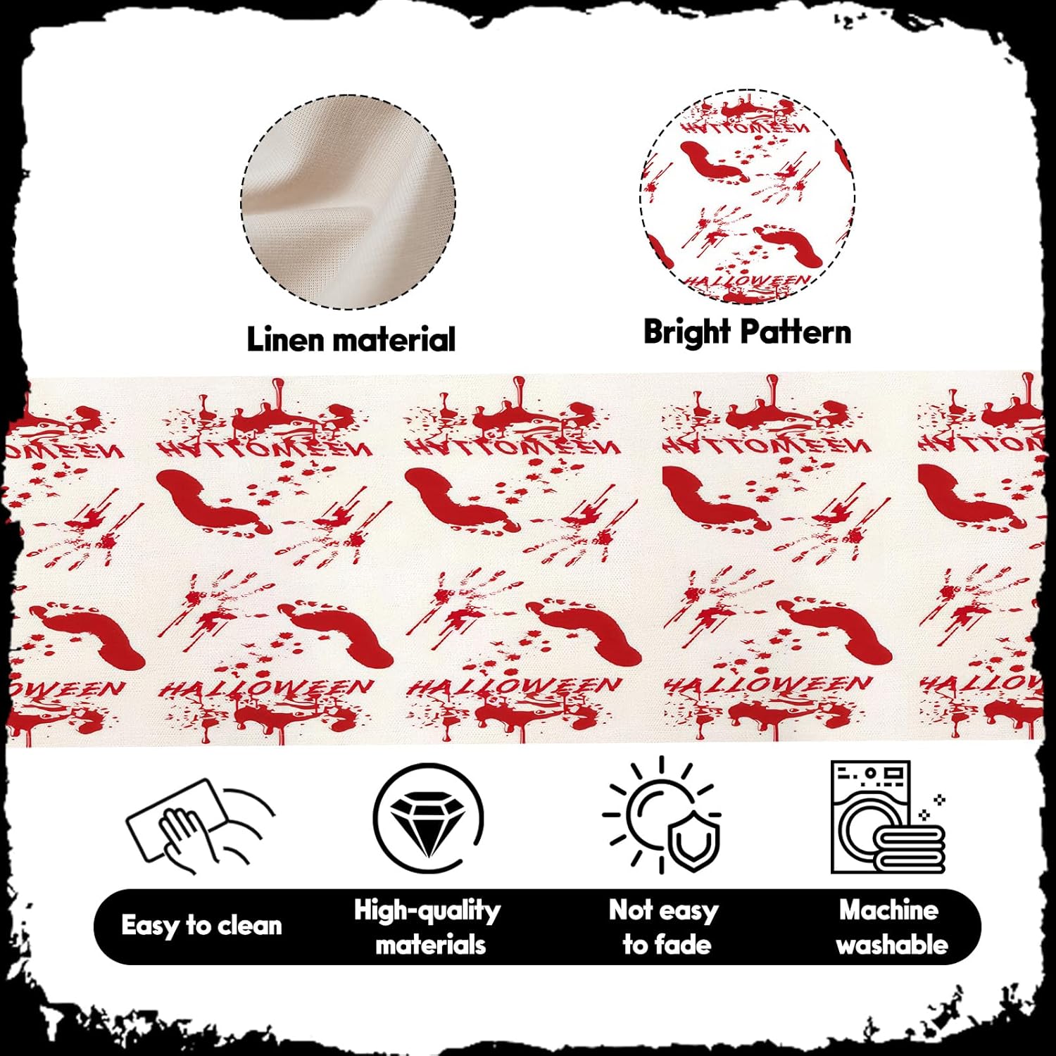 - Package Content: Includes 1 Halloween table runner (13x72 inches) with red bloodstains and footprints printed on it, these classic Halloween elements instantly turn your dining table into the focus of the holiday
