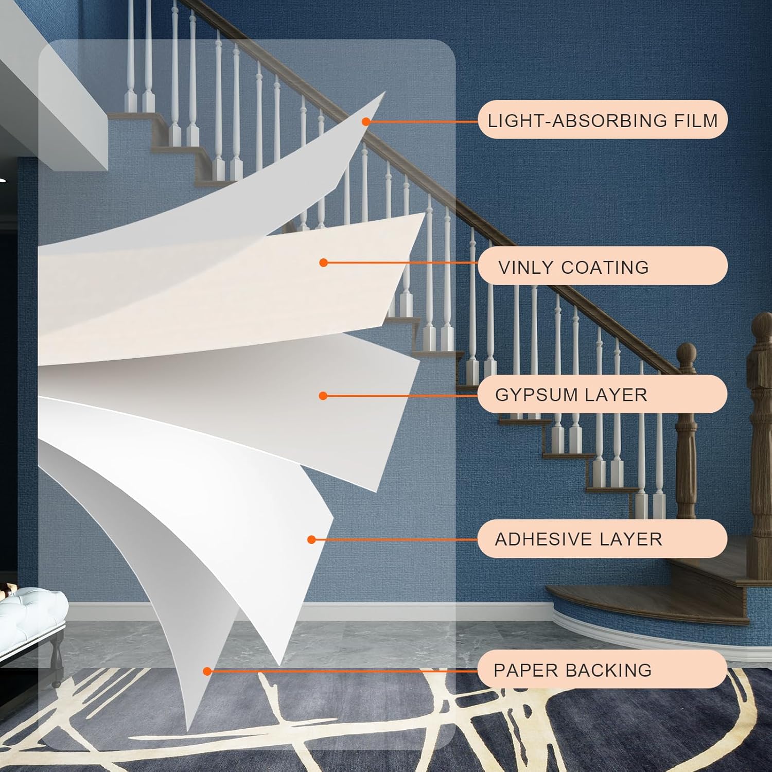 - FEATURES--Vinyl/pvc material. Thicker than normal wallpaper, full of real texture,self adhesive, easy to apply. Waterproof . Indoor use, ideal for most smooth flat surfaces such as bedroom,living room,cabinets,furniture,etc.
