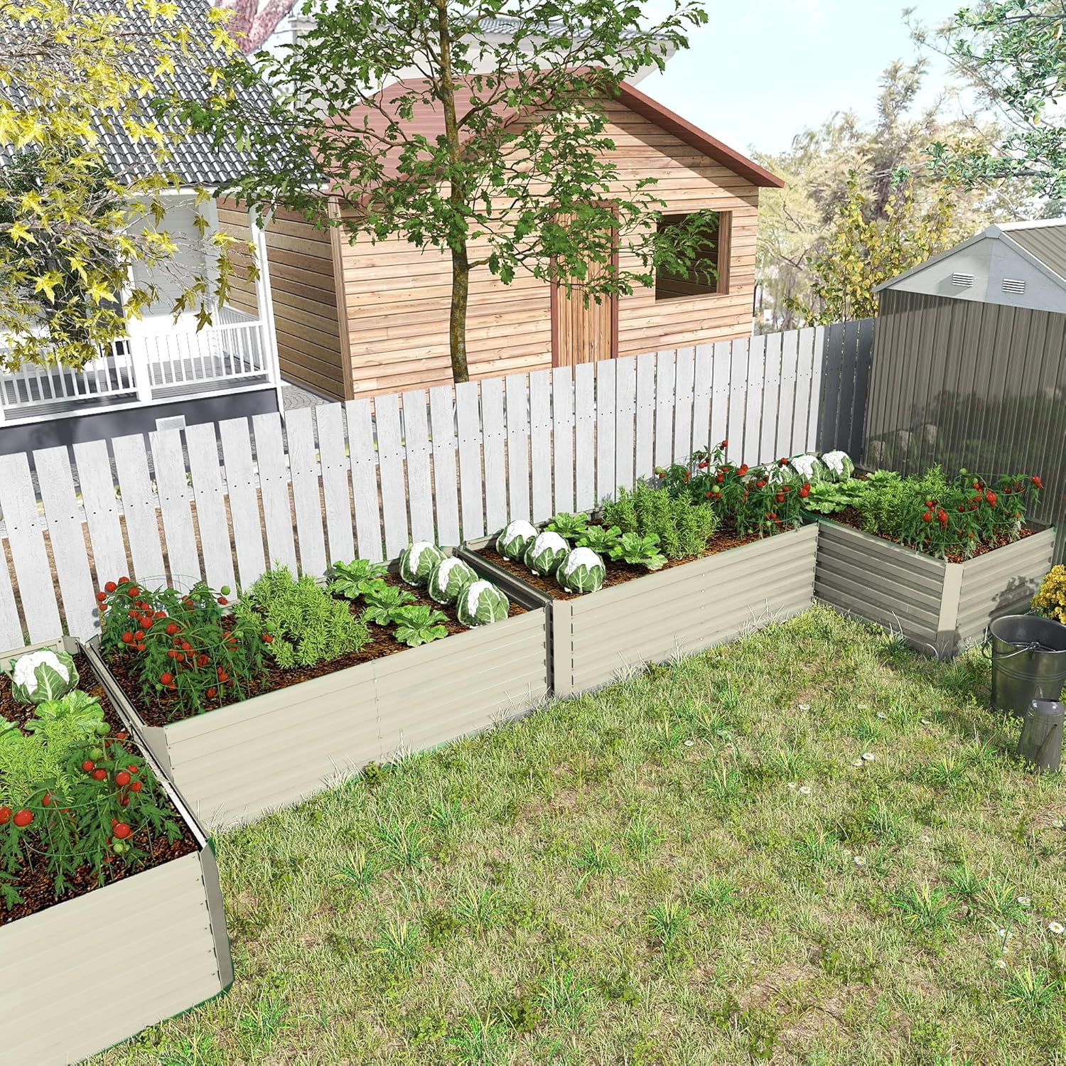 - Durable Galvanized Raised Garden Bed: Made of stable thickened galvanized steel sheet, which can be exposed to sunlight, rain, snow and other environments for a long time, equipped with two ground stakes and three stabilizing bars. Keep your garden beds looking their best for years to come.
