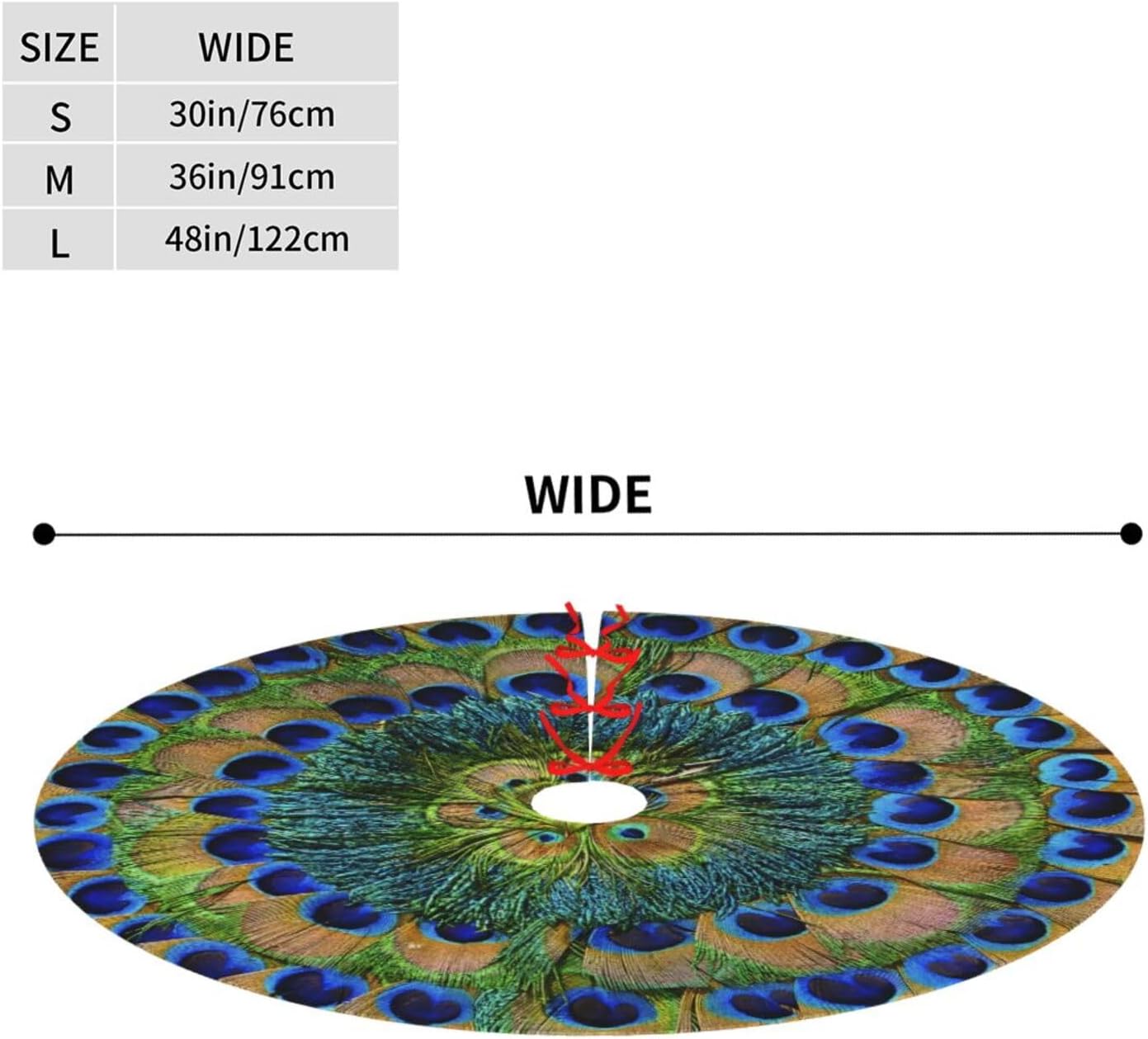 - Blending Classic with Innovation: Our Christmas tree skirt features a distinctive Peacock Feathers Circle pattern, merging traditional charm with a touch of modern elegance. This skirt promises to be a standout piece in your Christmas decor, setting a warm and romantic festive ambiance for your home. Don't miss out on this exquisite addition to your holiday season!