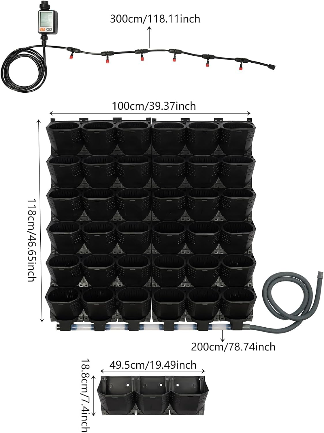 36 Pockets Hanging Planter Bags, Vertical Wall Mounted Plant Planting Grow Bags, Stackable Wall Planter with Timer, Self Watering Hanging Planters for Outdoor Indoor Garden-Black