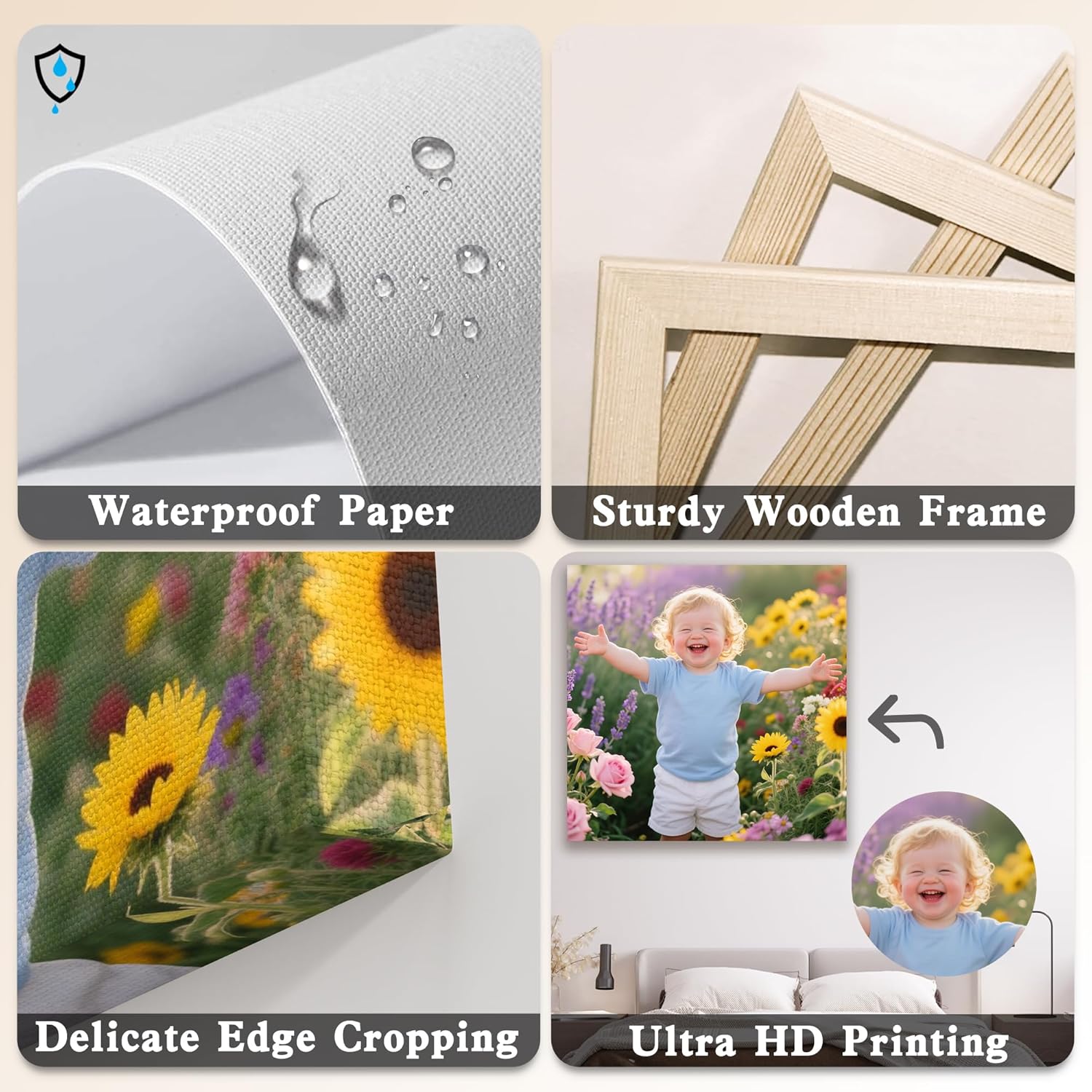 - [Made in USA – Shiped Fast]: Our custom photo canvas are proudly made in the USA using premium materials. Turn your favorite moments into stunning canvas photo prints for wall art. Whether it's family portraits, travel memories, or pet pictures, your personalized canvas will be crafted with care and attention to detail.