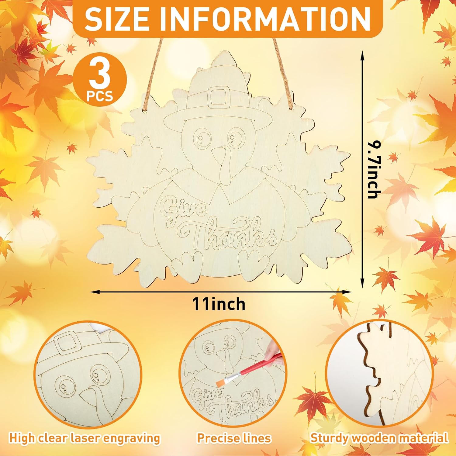 - Premium Material: These give thanks ornaments for crafting are made of high-quality wood, which is safe and sturdy, enough for long time indoor and outdoor use. It is also a good choice to complete the crafts with children.