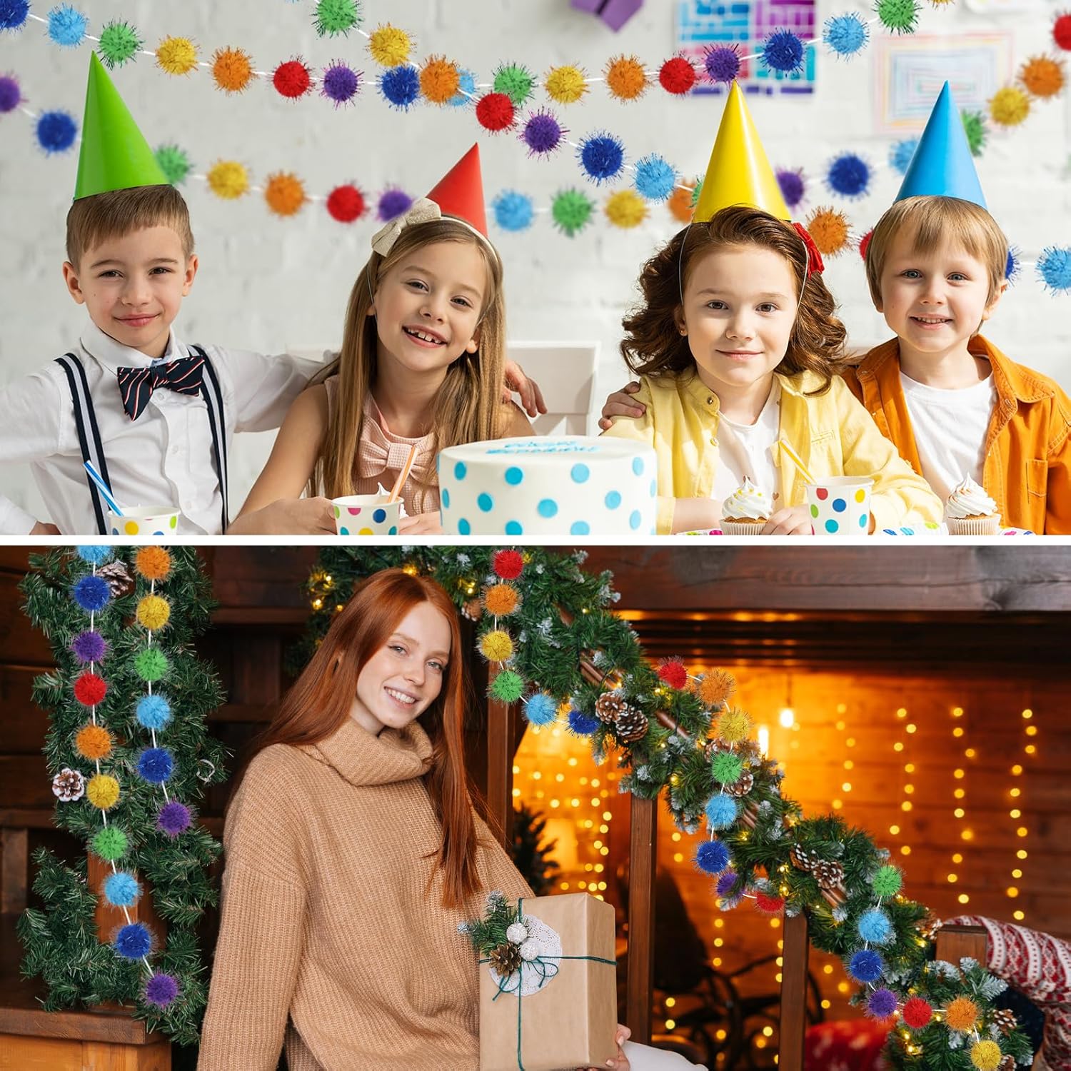 - Rainbow Glitter Pom Pom Garland Decorations, Christmas Felt Ball Garland for Mantle, Indoor Home Decor, Tree Ornaments, Kids Room and Party Hanging