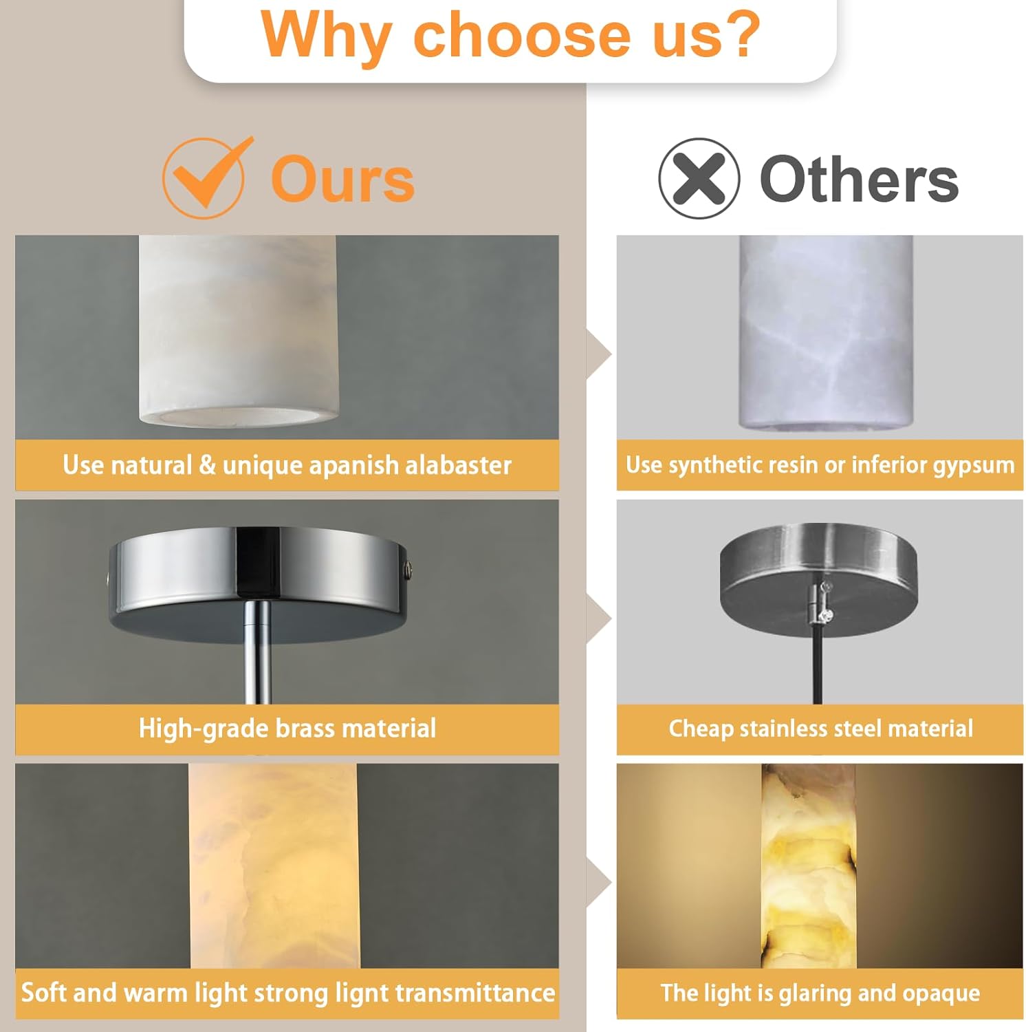 • 【Wide Application for Indoor】Alabaster pendant light fixture design is simple and exquisite, can be used as the perfect art for decorating home, suitable for a variety of home decoration styles. Ideal for restaurants, bedrooms, offices, kitchen islands, living rooms, corridors, entryways, foyers, stairs, farmhouses, bars, cafes, hotels, etc.