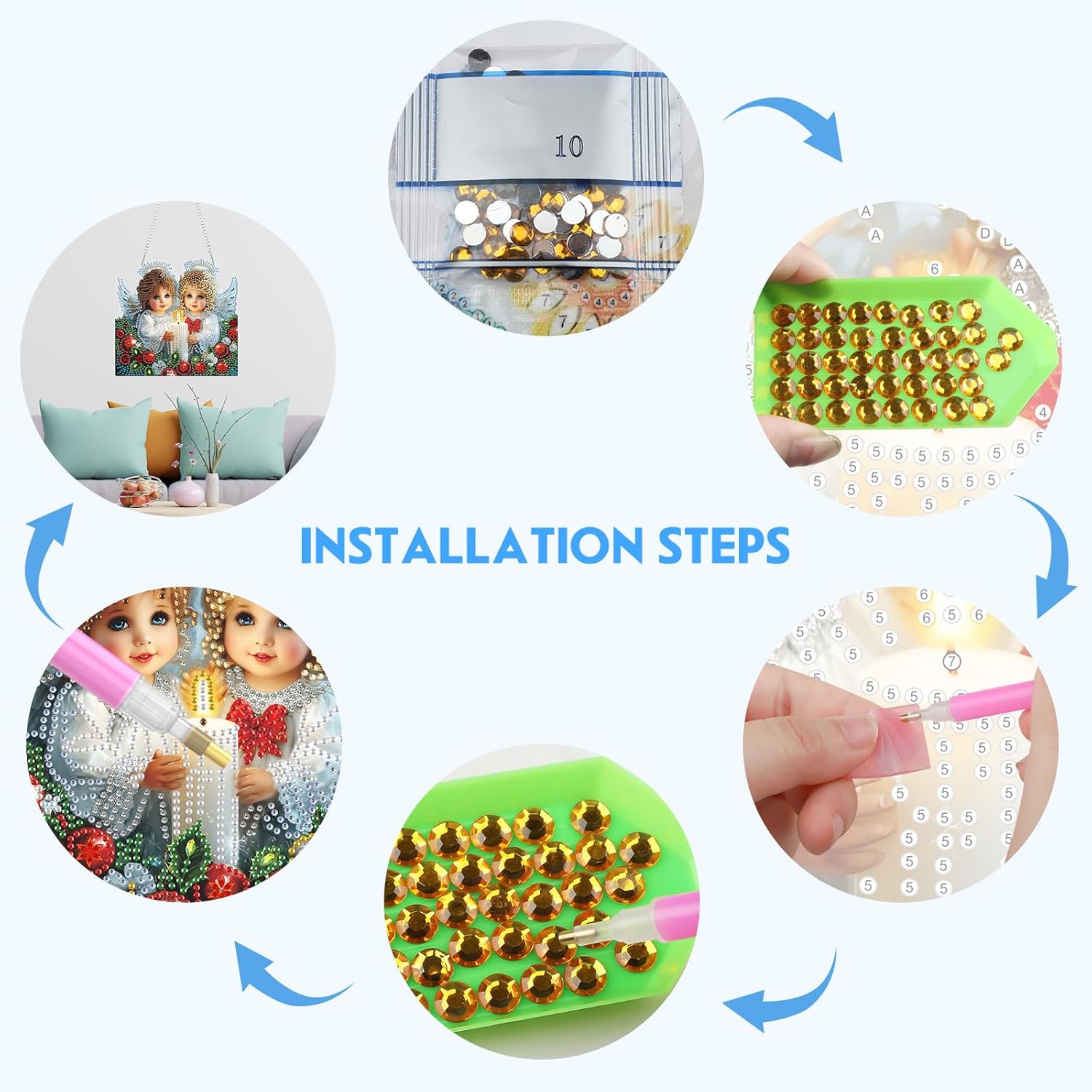 NEWENMO Hanging Diamond Art Kit for Adult, Angels in Heaven, 5D Special Shaped Rhinestone Diamond Painting Ornament, Christmas, DIY Acrylic Diamond Art Painting Window Pendants Home Garden Wall Decor